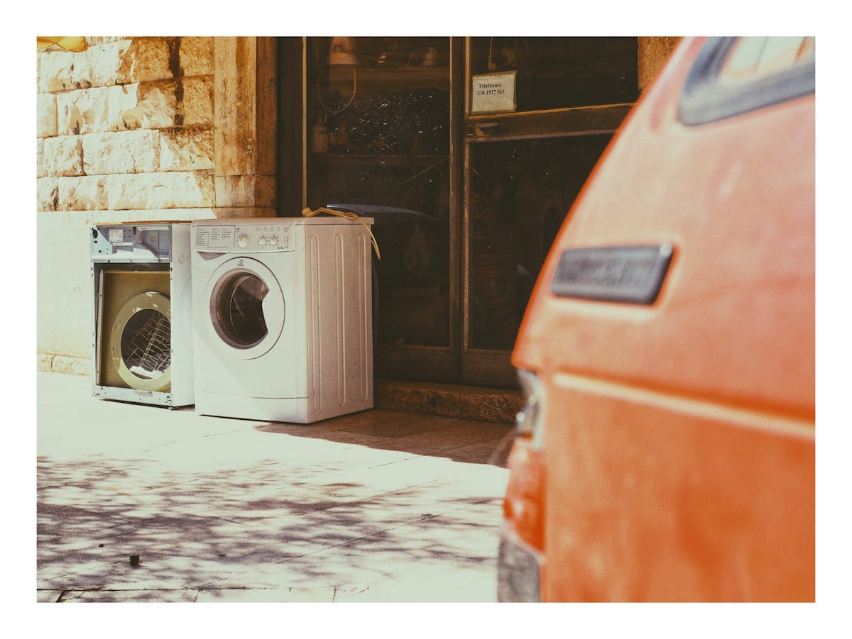 Mi piace anche la sensazione di sguardo distratto che focalizza l'attenzione su quelle vecchie lavatrici abbandonate.