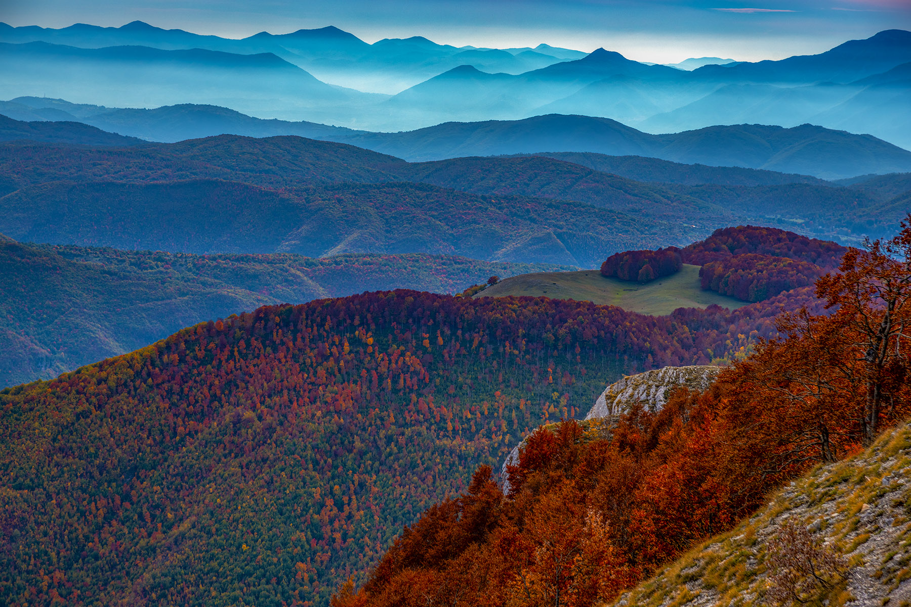 Luogo fantastico e magnifica atmosfera… Molto bello il contrasto tra le tonalità calde degli alberi in primo piano e quelle fredde del susseguirsi dei monti sullo sfondo… Un’ottima realizzazione, complimenti di cuore