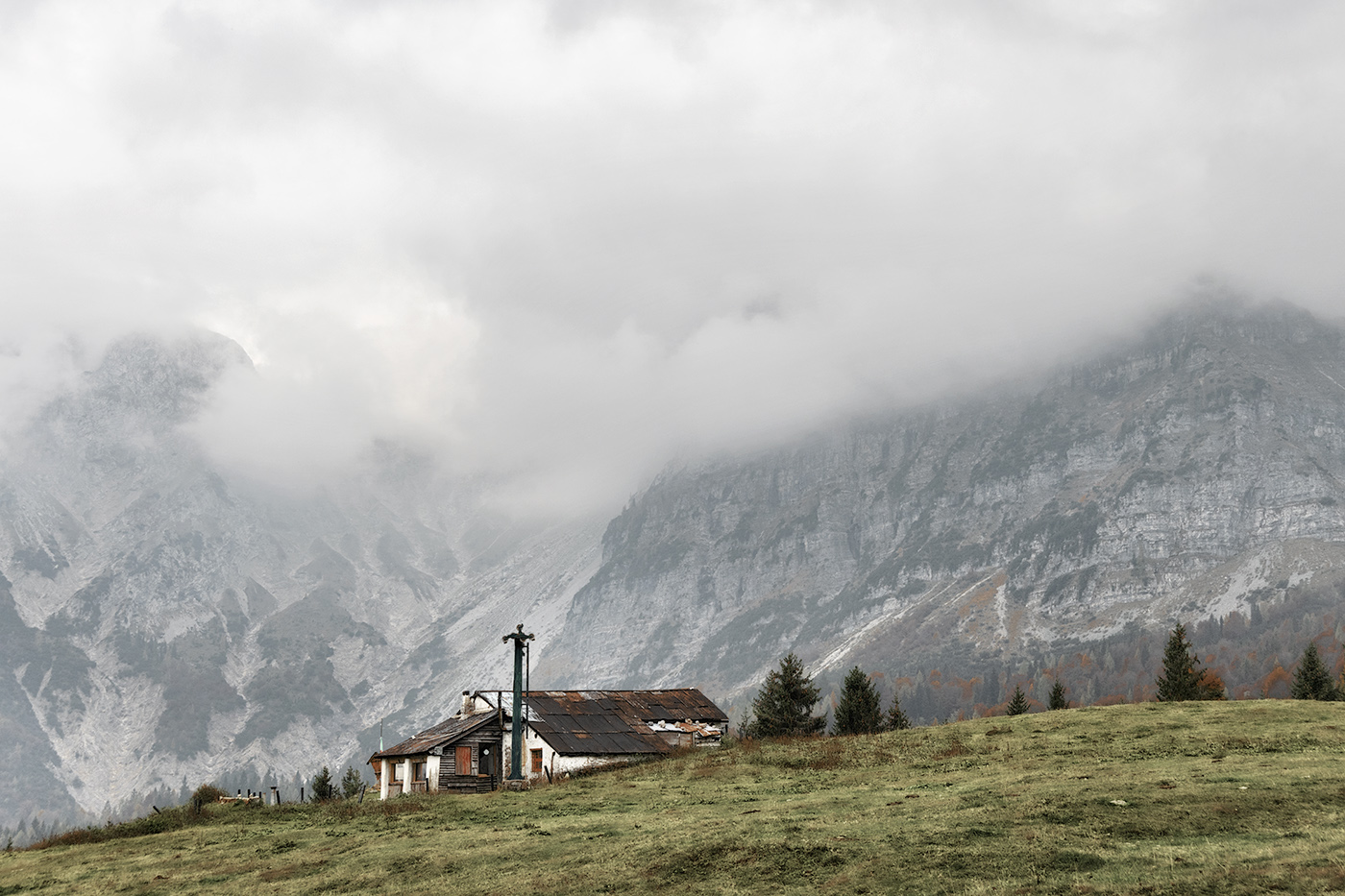 Mi piace molto sia per composizione equilibrata tra piede e cime ma anche per la resa cromatica divisa tra i grigi freddi e i verdi gentili del pianoro con la costruzione in tinte tenui.