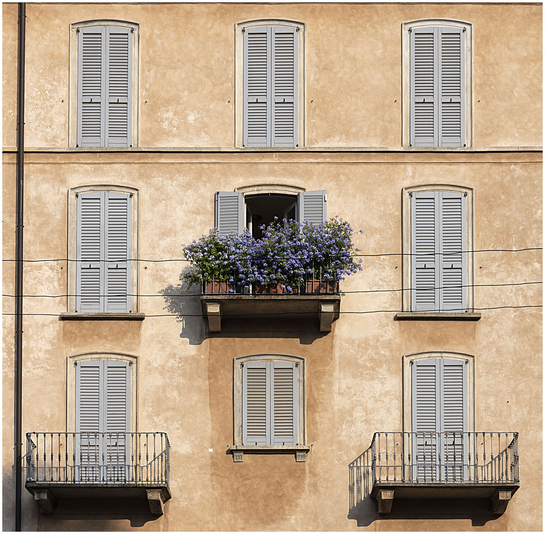 la precisione millimetrica ed il rigore ingentiliti dal balcone fiorito, molto belle anche le cromie