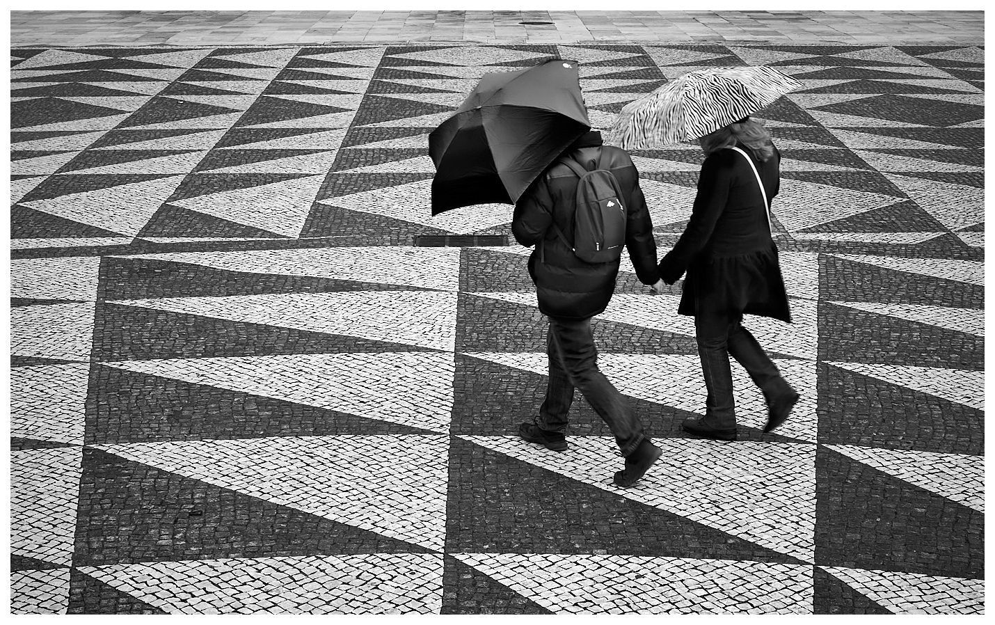 | Gli ombrelli.....il passo dei due...la pavimentazione   ...triangoli ovunque....ma ..il triangolo no... non l′avevo considerato. D'accordo, ci proverò. La geometria, non è un reato. 👍 |  |