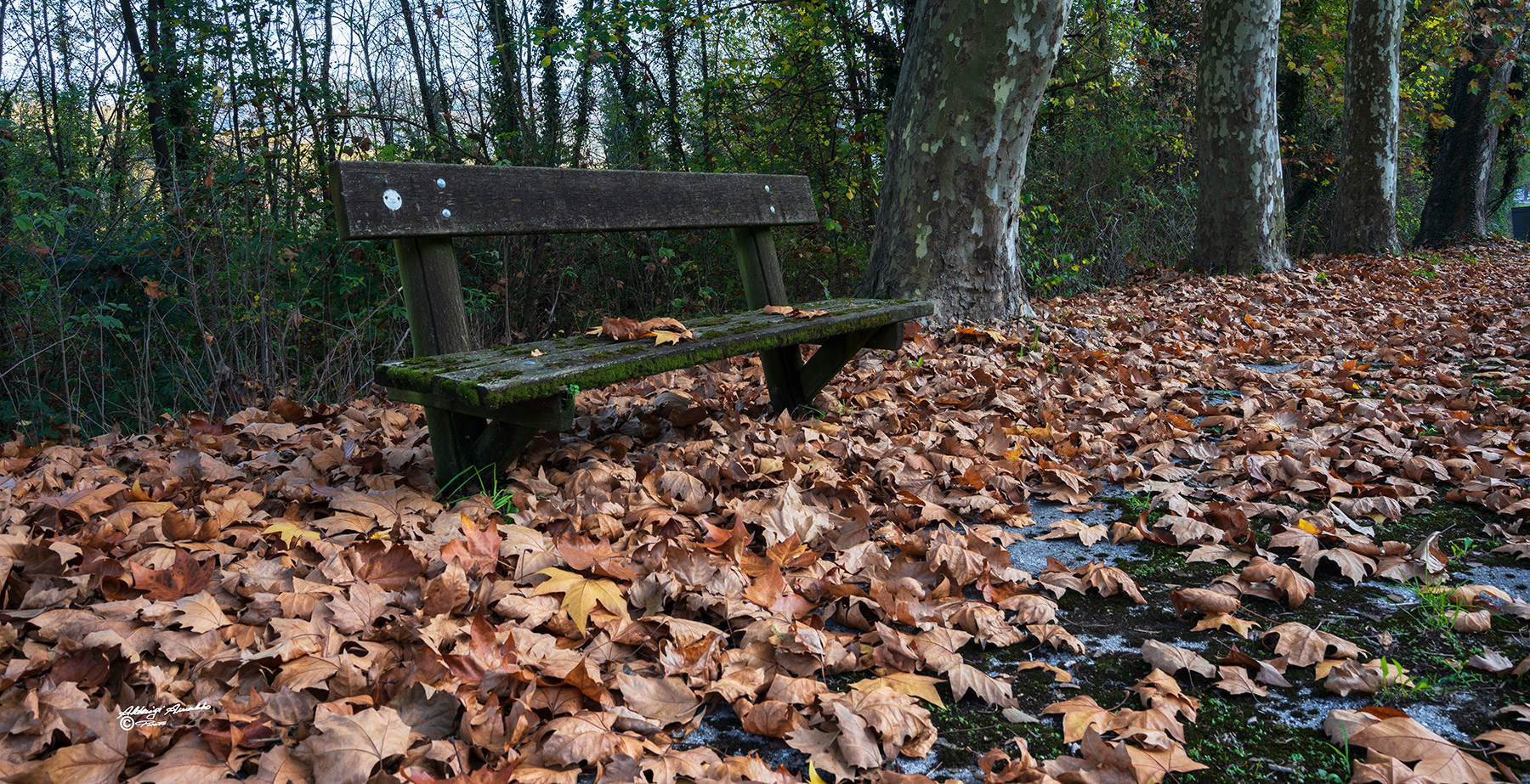 Un tappeto di foglie, una panchina libera da persone ma occupata da foglie e muschio. Un bel quadretto autunnale _________________ Giuseppe |