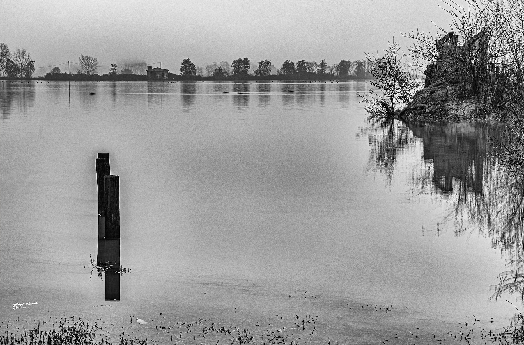 Molto bello questo paesaggio d'acqua che forse preferisco nella versione colore.Ottima composizione e profondità. Ciao,Sergio.