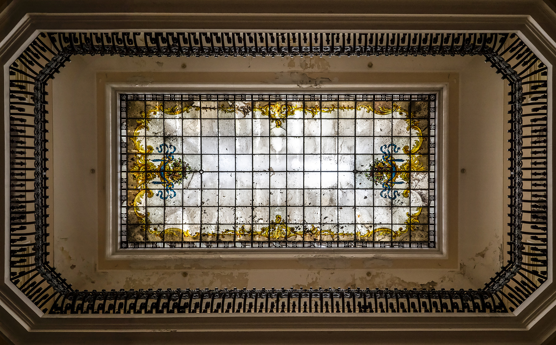 Una ripresa geometrica accurata e precisa, Certo vederla con la vetrata pulita sarebbe stata molto più estetica ma forse il palazzo è un po' trascurato o addirittura abbandonato.