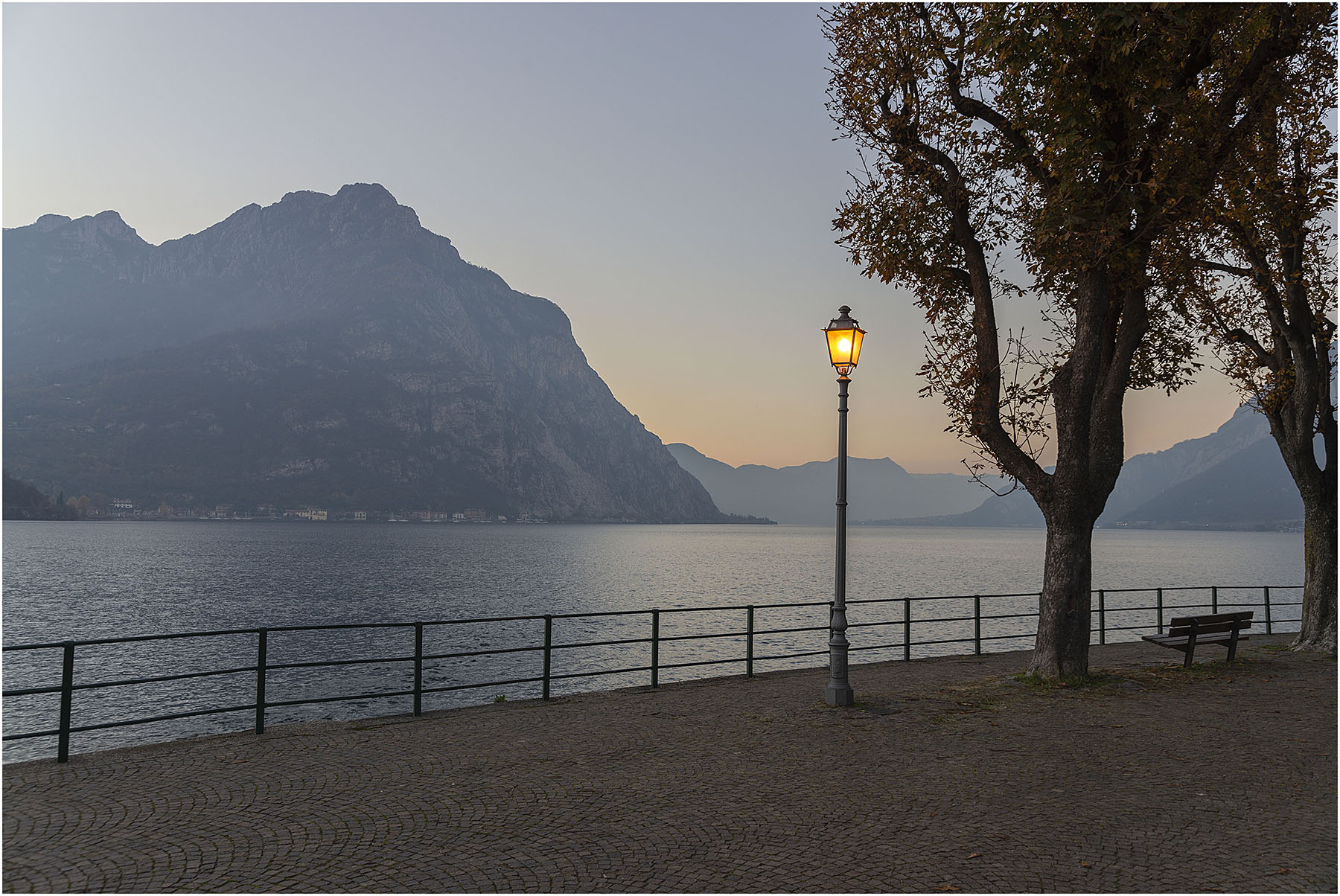 Atmosfera quieta e riflessiva,a farla da padrone è quel lampione solitario che con il suo colore acceso spicca dai colori tenui e rilassanti della scena. Bellissima anche la panchina vuota,personalmente avrei spostato di più l'inquadratura verso destra in maniera da includere maggiormente la panchina e l'albero che delimita il frame,elementi di disturbo permettendo  _________________ Massimo Facco