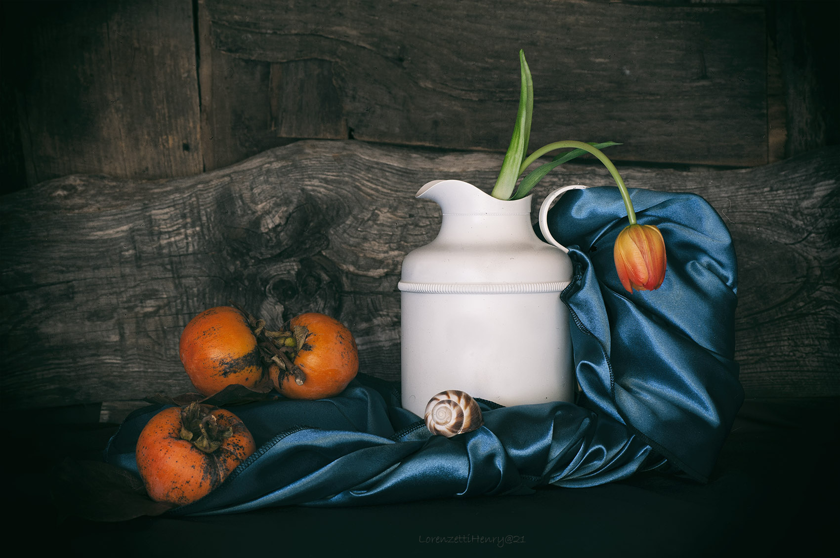Un bellissimo still life dalle tinte accattivanti e immancabile chiocciolina compagna di mille opere d'arte.