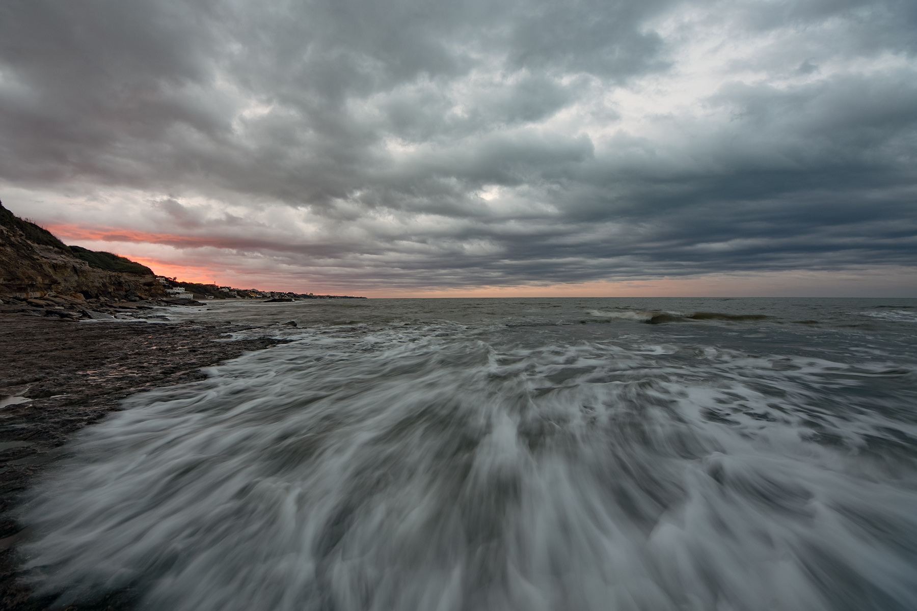 Ottimo il pdr e i tempi di ripresa. Il cielo molto nuvoloso sembra voler incombere sull'acqua, mentre all'orizzonte una luce rosata, che contrasta piacevolmente con il resto del frame, sembra voler annunciare un tempo migliore. Ottima proposta