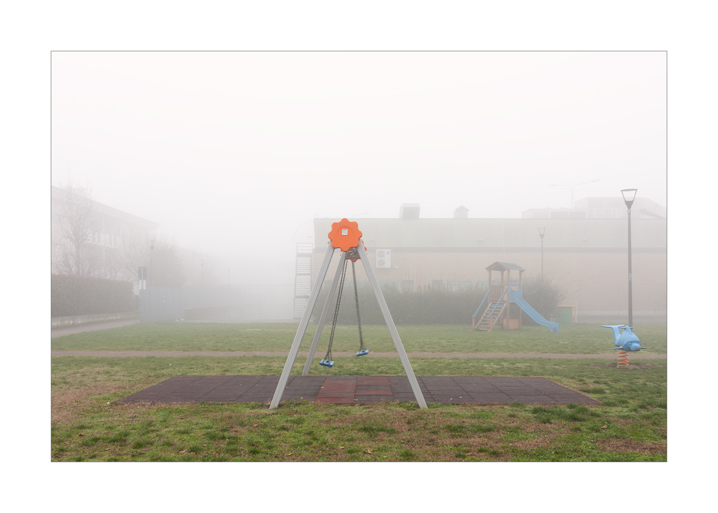 | La centralità delle altalene nel fotogramma e la nebbiolina uniti all'assenza di soggetti umani e ai colori delicati rendono bene il senso di staticità temporale del luogo e del vuoto inanimato. Buona. Ciao, Tiziano |