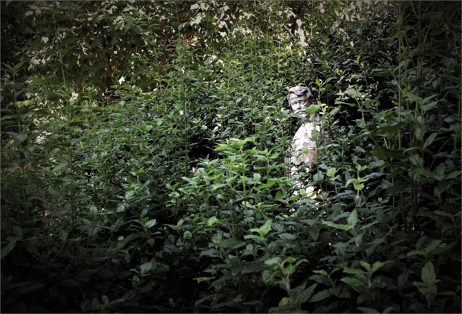 La cosa bella di questa immagine è la netta sensazione che sbucando dalla vegetazione la statua ti abbia fatto tana. Le manca solo la parola.