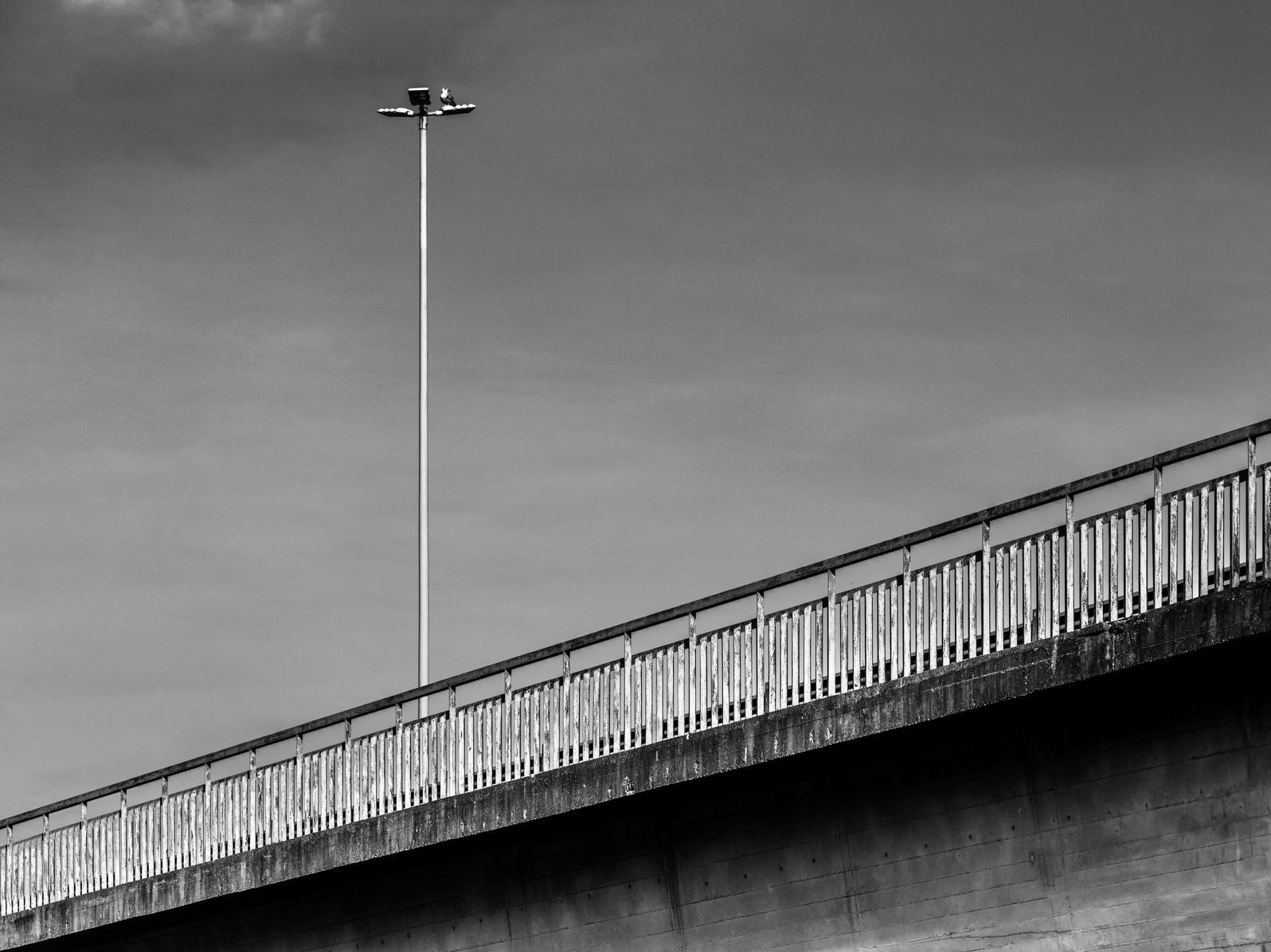 Un bianconero ben curato, semplice, geometrico. Pochi elementi ben distribuiti: parapetto in ferro, palo con i lampioni e il volatile, ne fanno una composizione riuscita _________________ Giuseppe |