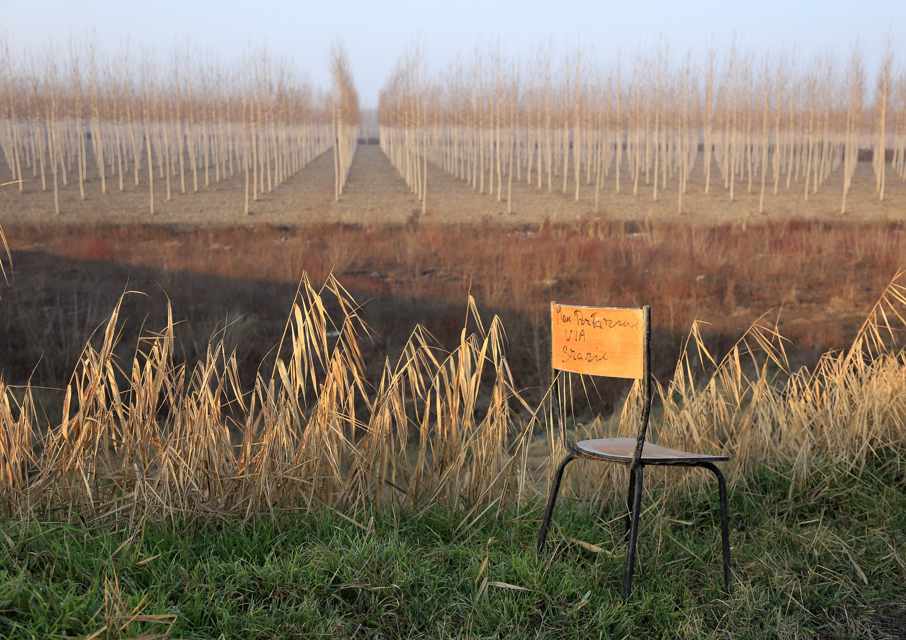 Girovagando per qualche scatto mi sono imbattuto in questa sedia posta su un argine secondario, nemmeno asfaltato. Incuriosito mi sono avvicinato ed ho notato la scritta. Non il solito messaggio categorico, di divieto, ma bensì un messaggio gentile "non portarmi via", come se la sedia stessa chiedesse in prima persona di essere lasciata li in attesa di chi l'ha portata per usarla. Il messaggio si chiude con un "grazie".