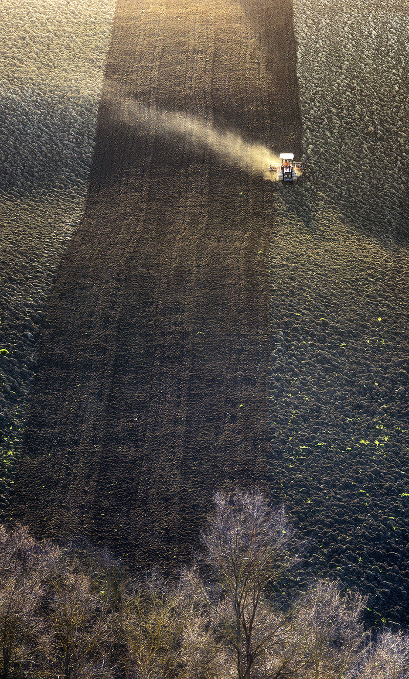 | Buona la composizione che rispetta gli standard della regola dei terzi, Buona la luce e bello l'effetto del terreno arato che si stacca di tono da quello intorno ancora da arare. Buona. Ciao, Tiziano |