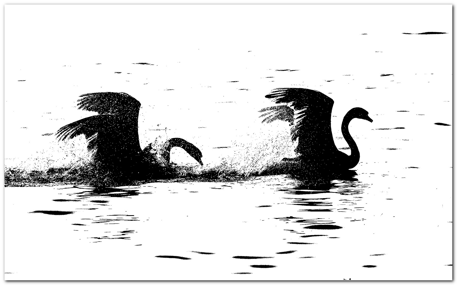 Una coppia di cigni si rincorrevano in pieno controluce.