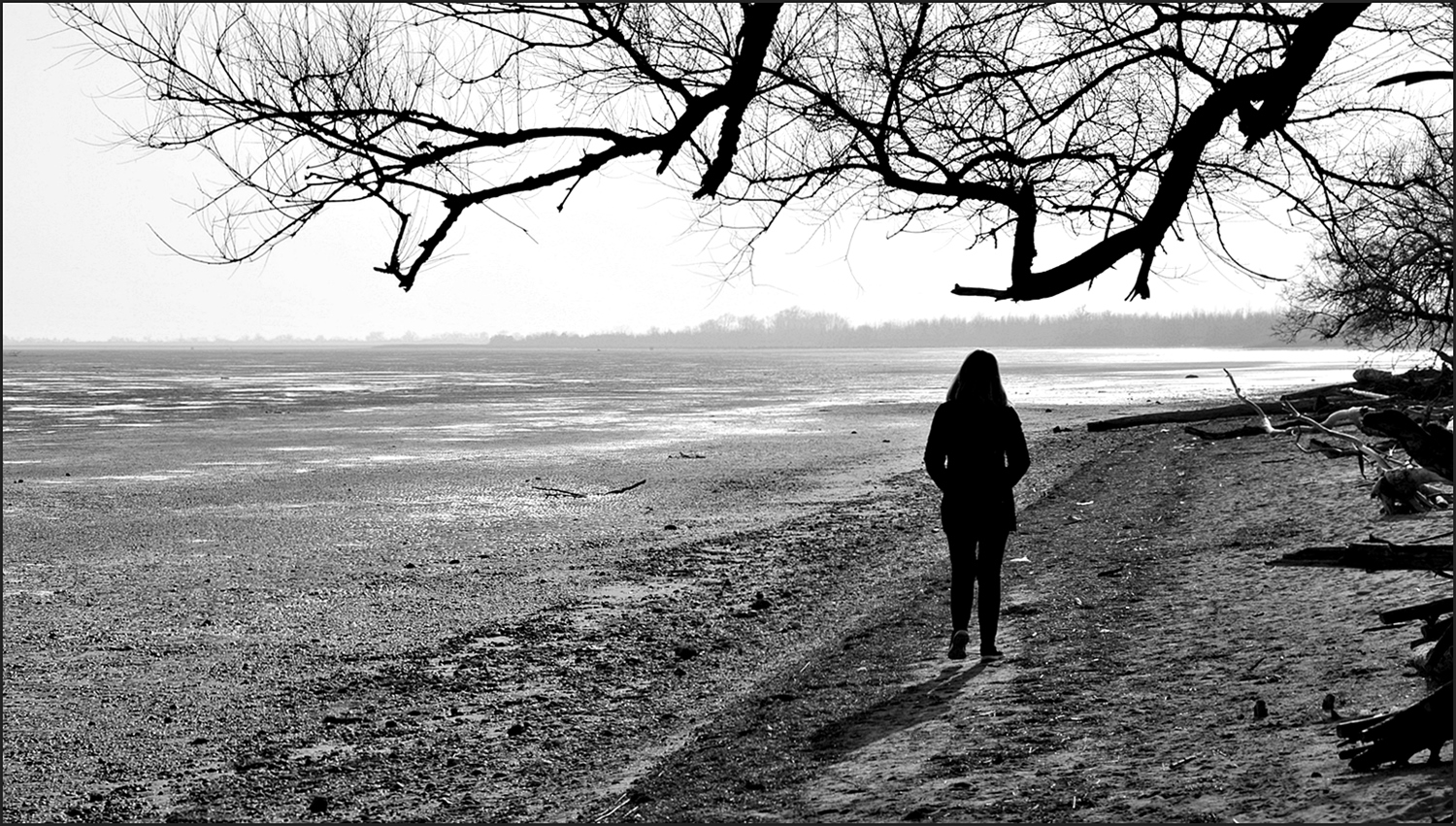 | Un immagine che hai saputo ben sfruttare  con questa silhouette della ragazza , mentre passeggia in solitudine e tranquillità, ottima atmosfera e b/n.   Arnaldo