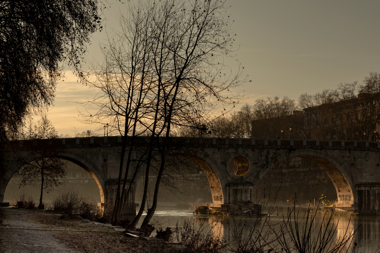 La luce radente sugli archi, sul fiume con i suoi riflessi, creano un'atmosfera fantastica. Per me ottima