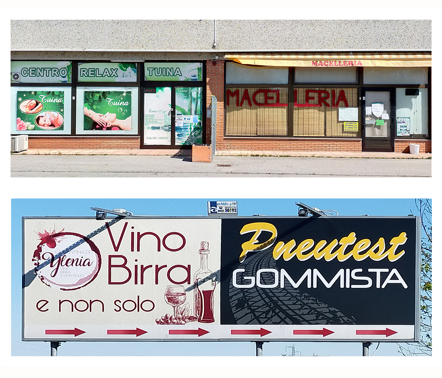 Difficile leggere questi manifesti senza una chiave di lettura dell'Autore, anche per la disposizione, forse maglio affiancati? Ma si riduceva lo spazio a disposizione. Si impiega del tempo per leggere tutte le scritte e per risolvere il rompicapo, non facile.