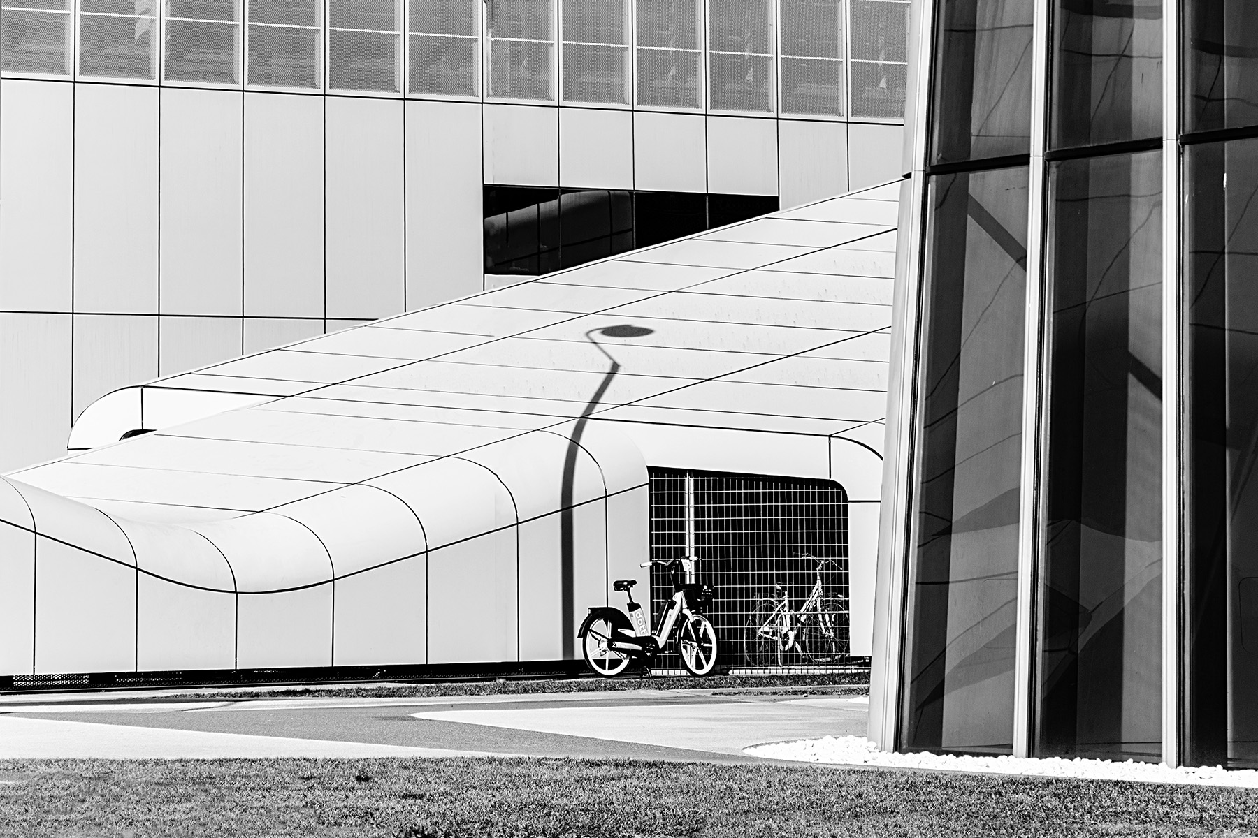 Vuota a sinistra. Poi verso destra ci sono le due biciclette, di cui una "in gabbia".