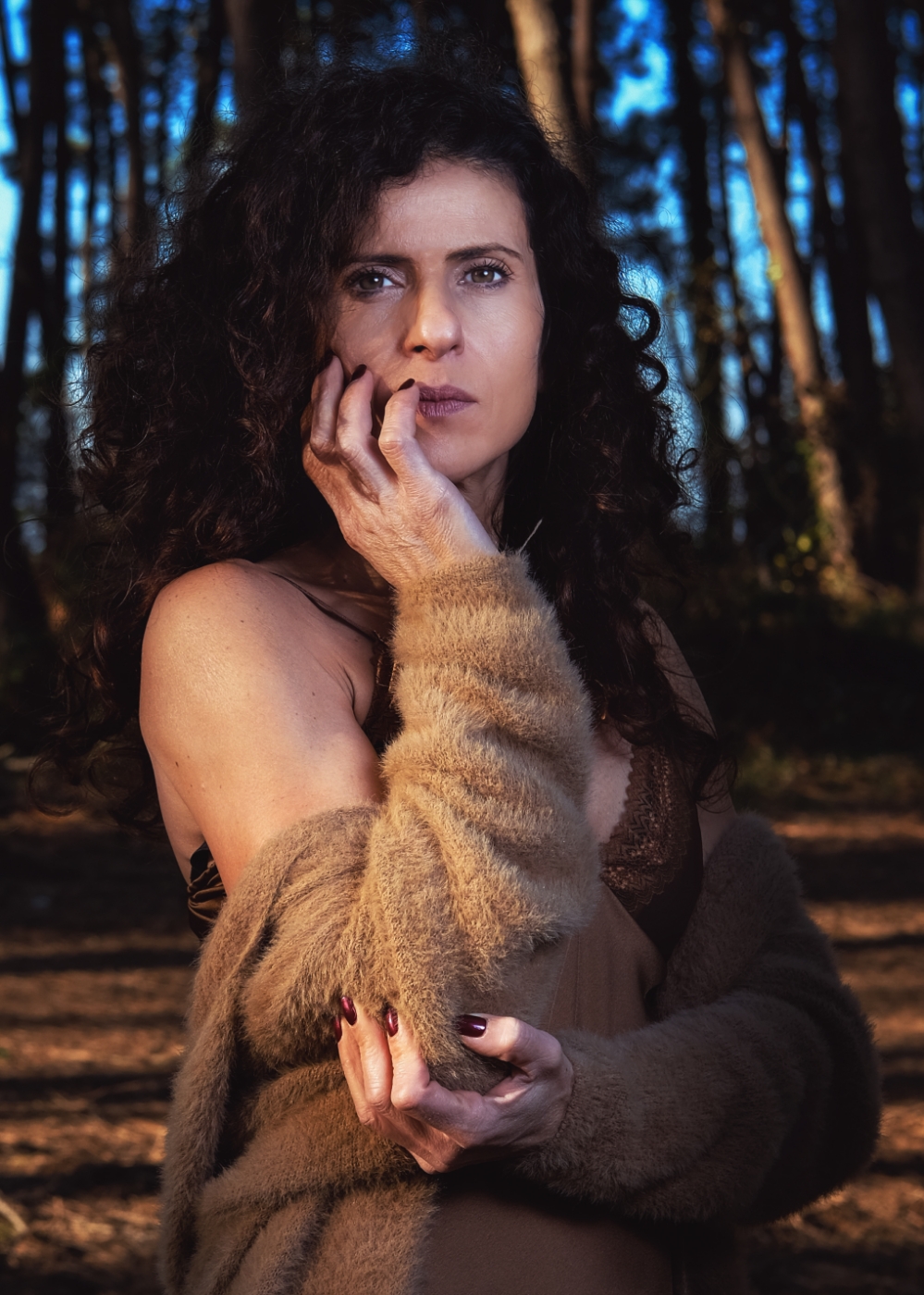 La posa è forse un po' forzata,rende tutto un poco impostato, anche se si sposa bene con la sua espressione sicura e scrutatrice. Mi piace molto il gioco di colori, questo tono su tono tra sfumature calde e terrose di abiti e sfondo con lo stacco deciso e piacevole dell'azzurro del cielo. È una proposta interessante per me, ripeto avesse avuto un pizzico di naturalezza in più sarebbe stata ancora più efficace.  _________________