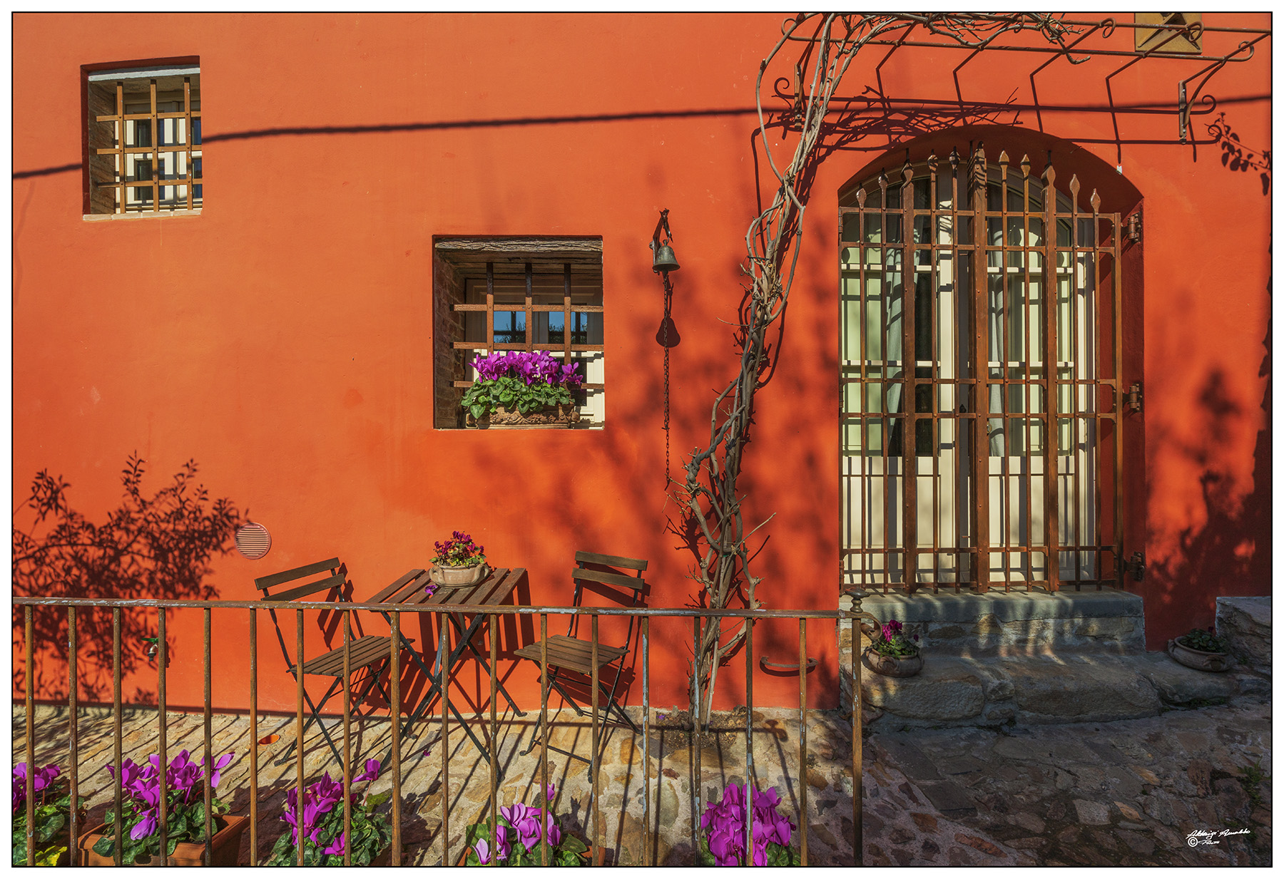 Sono stato attratto dal forte colore Rosso.. forse in quel momento era anche troppo, ma questa casa con porte e finestre racchiuse da inferiate, i piccoli vasi con i ciclamini .. e sicuramente quando la pianta che ornamenta la porta sarà fiorita.. questa facciata sarà ancor più bella. Per questo ho voluto condividere con voi.