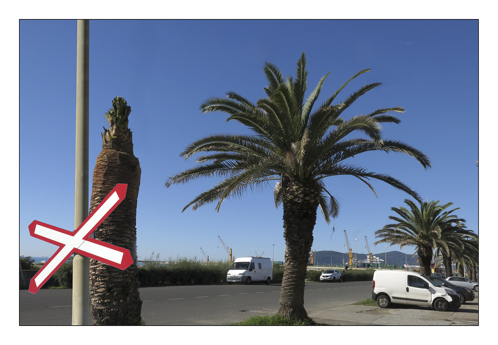Grazie Giovanni per essere intervenuto. Penso che tu abbia ragione, Probabilmente il messaggio è debole. Ho associato la palma morta ,terminata appunto , e le altre vive giocando con la X del segnale stradale inteso come cancellata. I troppi elementi nella scena non mi hanno aiutato.Un saluto, guido