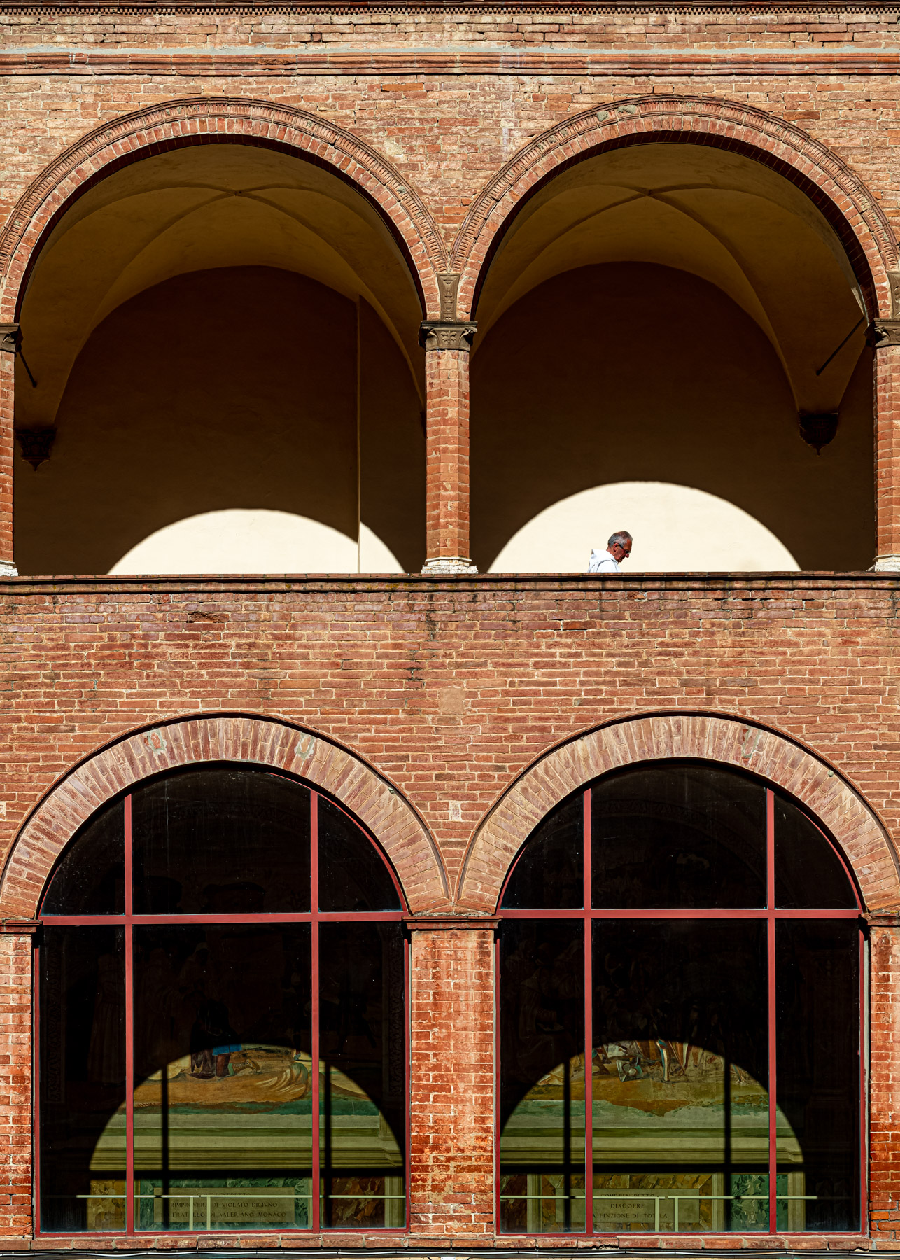 Una inquadratura precisa con una bella suddivisione degli spazi. Mi piacciono i colori caldi della scena che contrastano con il verde della parte inferiore. Luci e ombre ben gestite danno profondità. La figura del frate se pur piccola, ben collocata nello spazio, anima la scena e la rende interessante. Bravo. _________________ Giuseppe |
