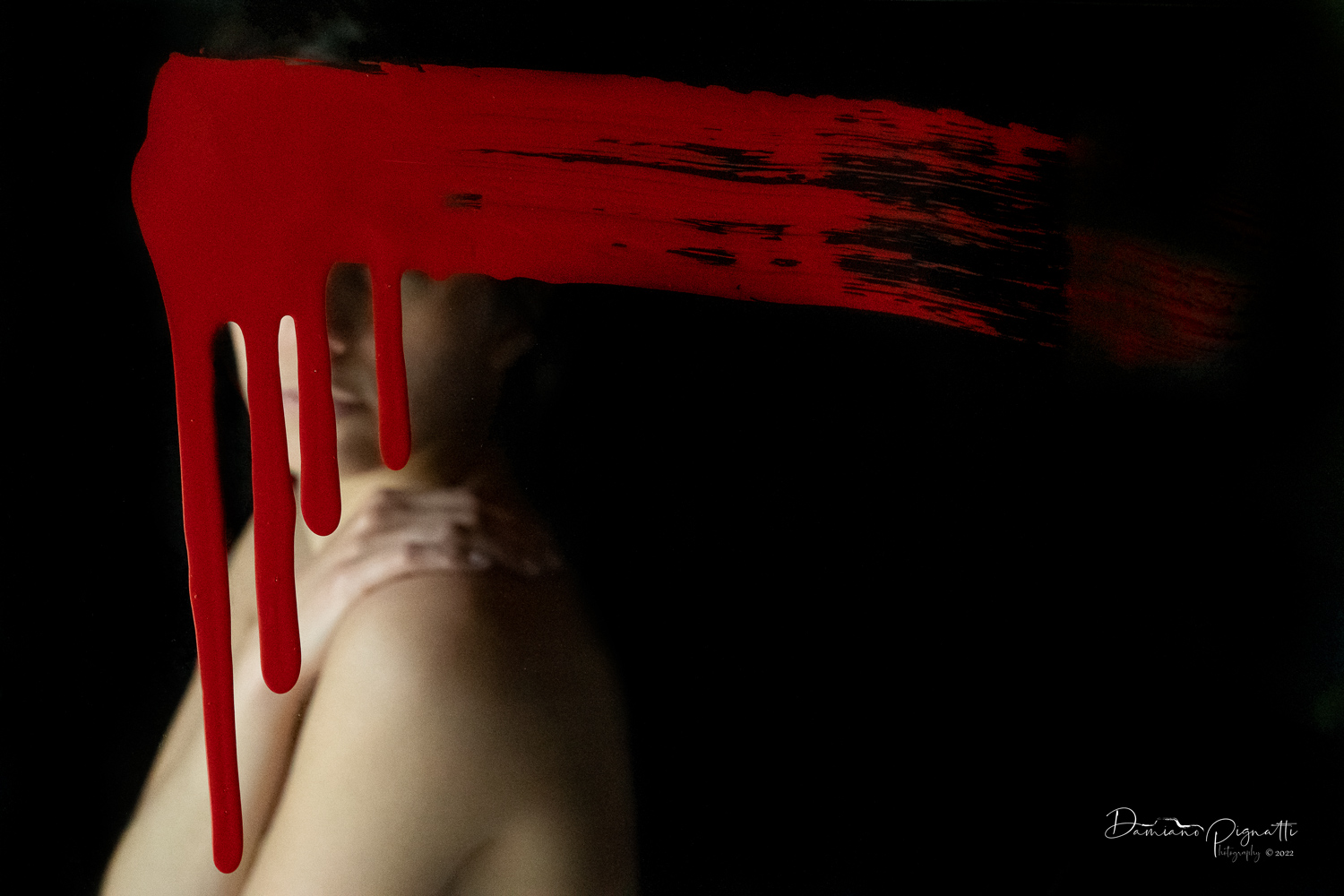 Di forte impatto. Contrapposizione della dolcezza del gesto e della sensualità intima e discreta della modella nel piano sfuocato e l'aggressività del rosso sulla violenza delle donne in primo piano.