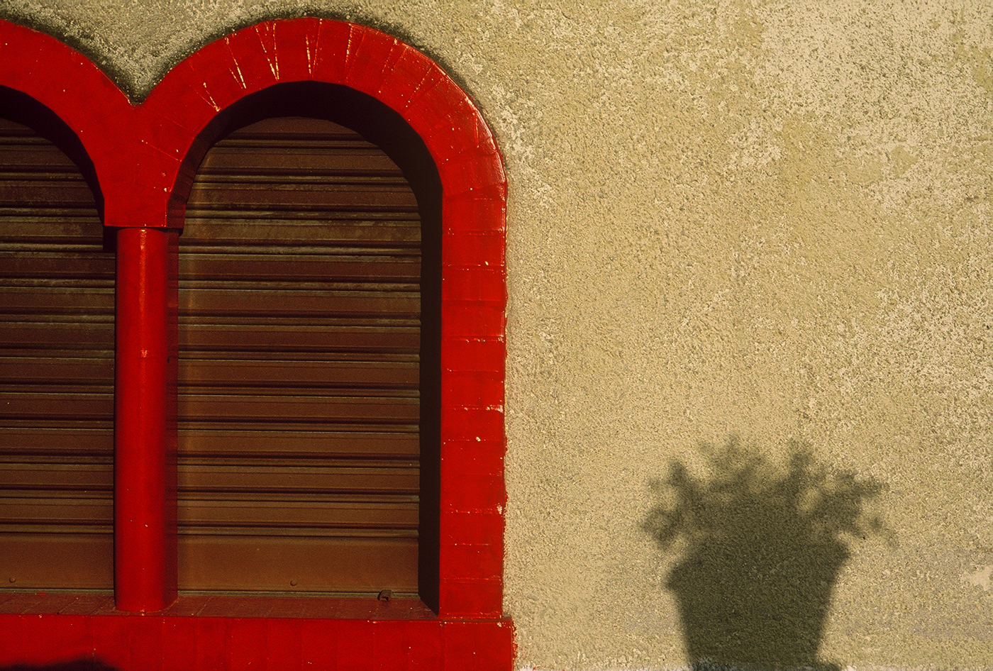 Piacevole il rosso, ed anche l'ombra del vaso.