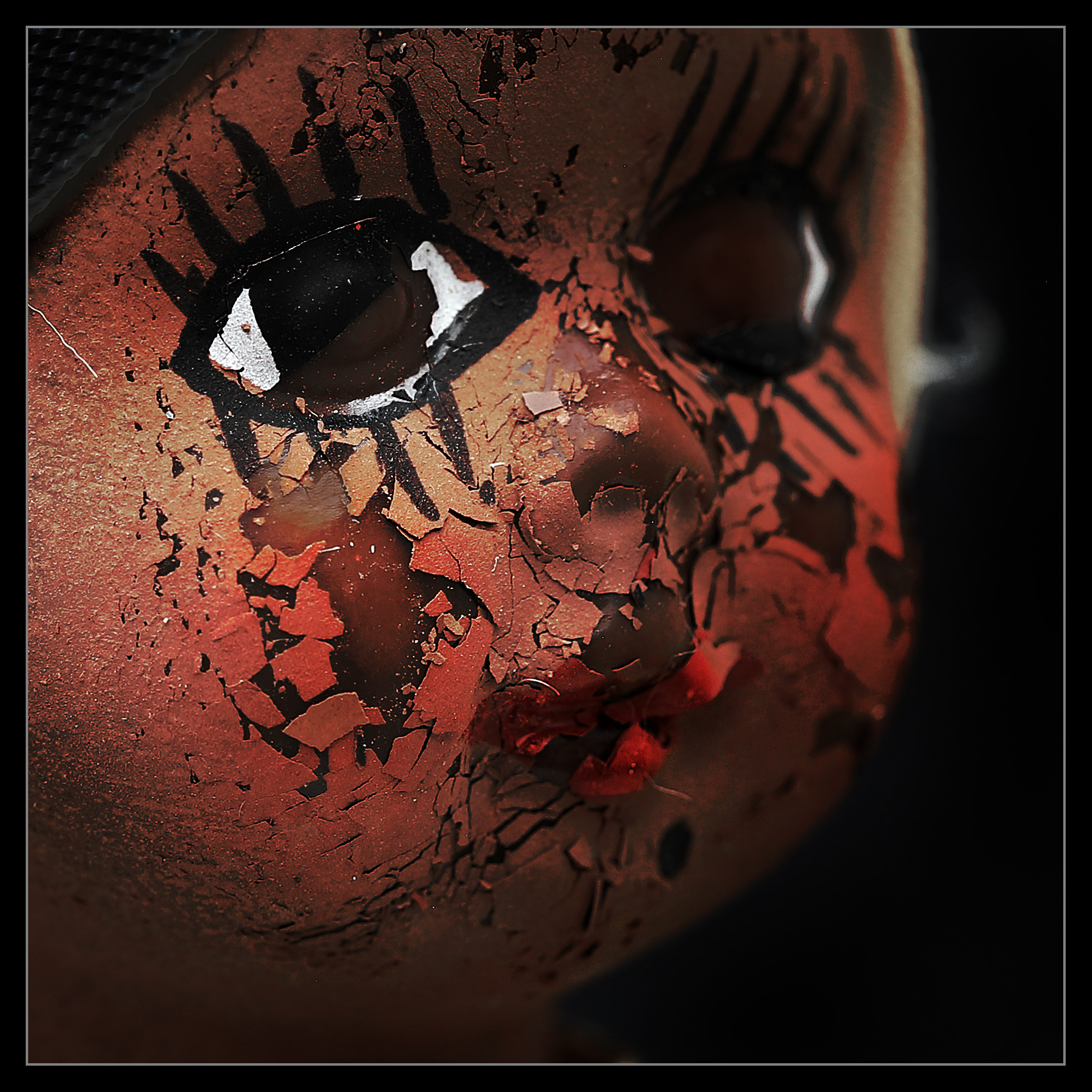 Un primissimo piano al volto di una bambola dalla pelle screpolata, che ormai mostra a malapena i tratti originali dei lineamenti a parte quegli occhi spenti ma dietro ai quali si intravede ancora una scintilla di vita che urla allontanandosi.