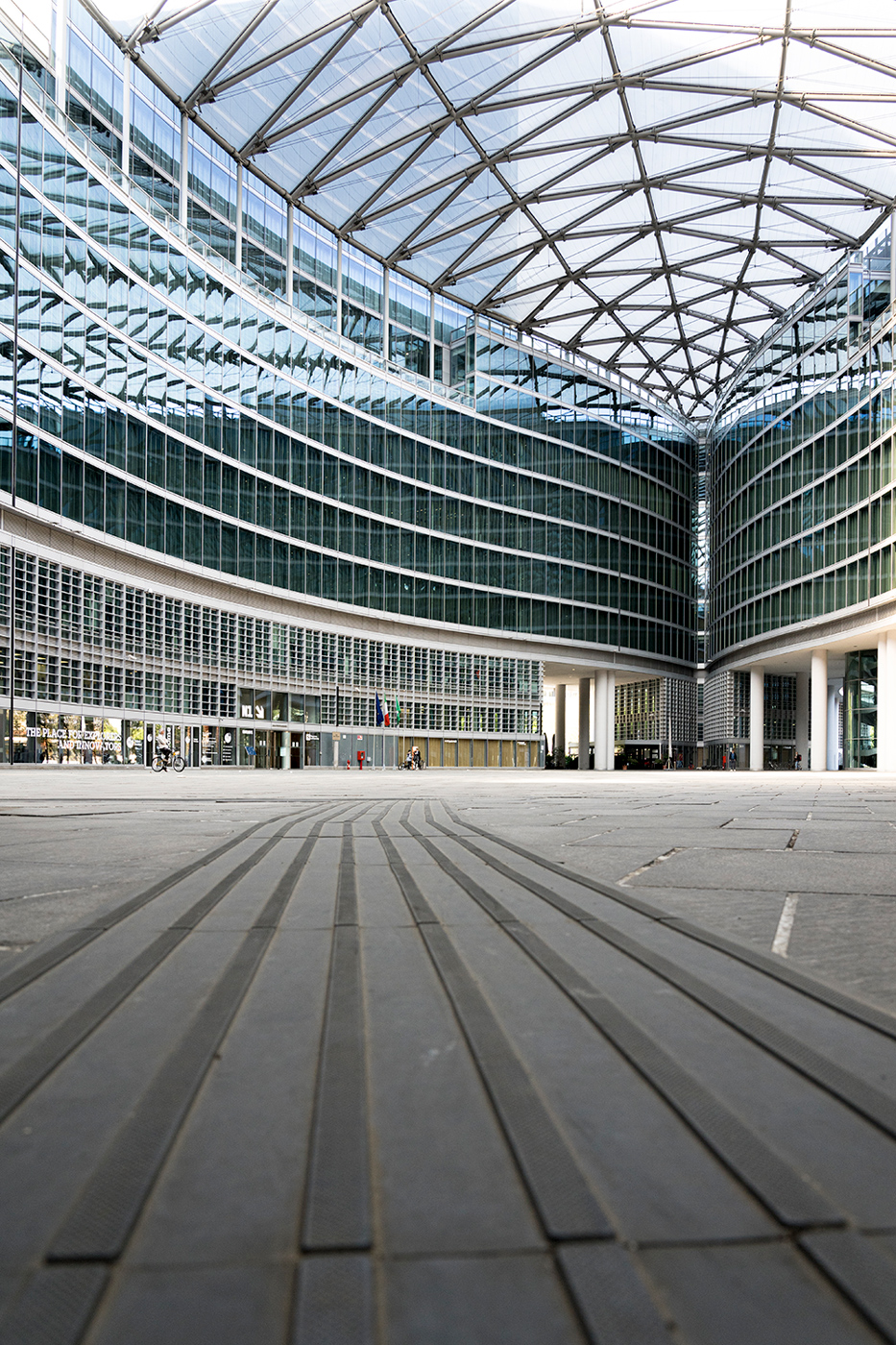Interessante e ottimo scatto. Le linee sul pavimento e le linee ondulate sulla costruzione, danno allo scatto un bell'effetto