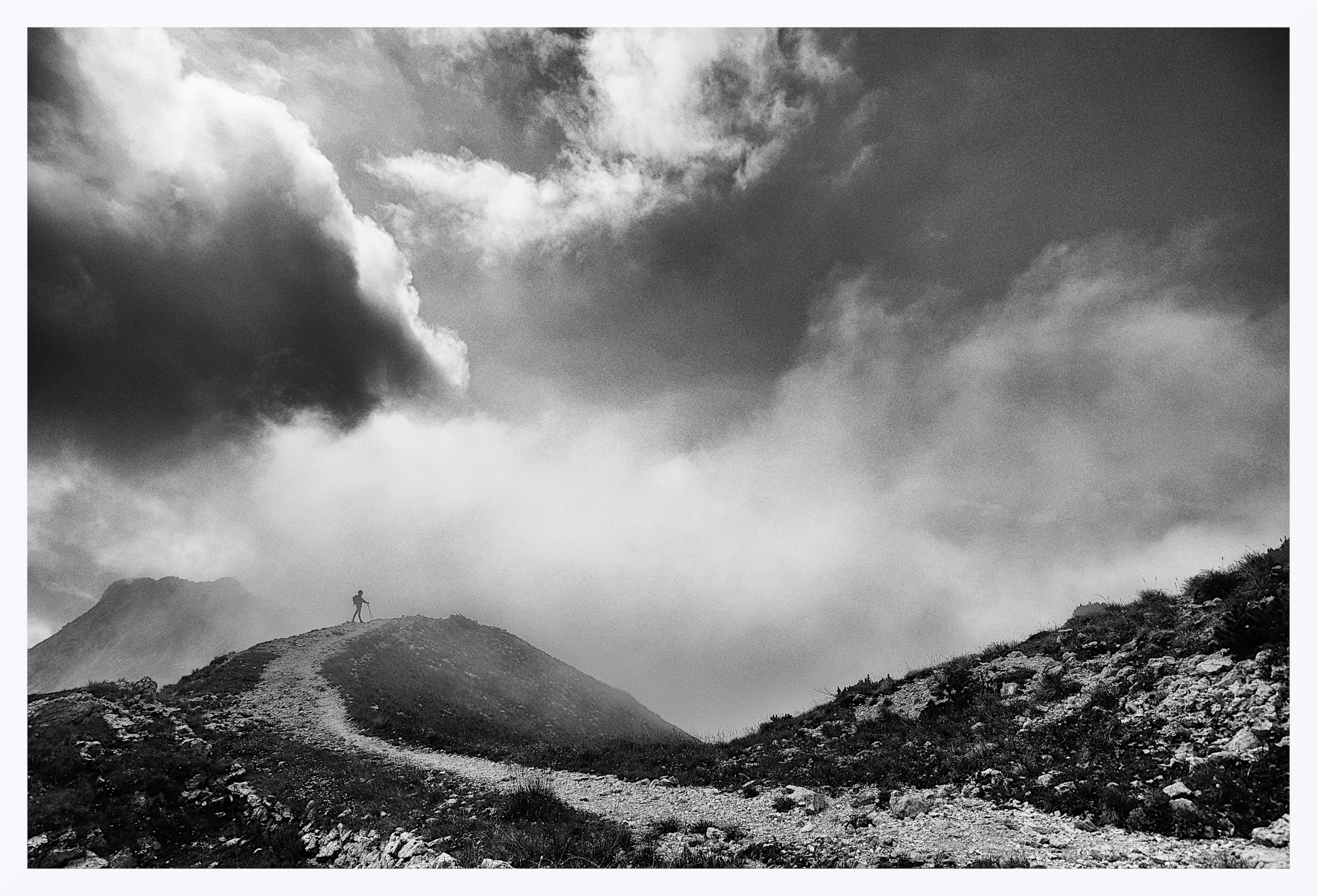 un cielo cupo e minaccioso mette in risalto la severità della montagna e il suo irresistibile fascino. Fondamentale la persona (cioè tu ), piccola presenza in questo grandioso scenario