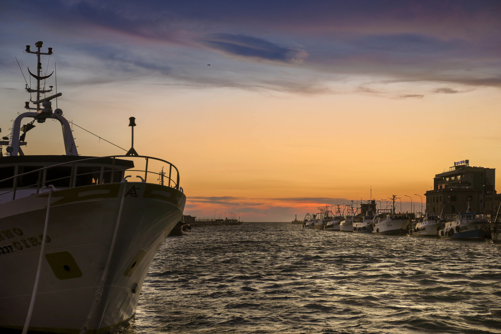 Immagine confezionata dalla contrapposizione tra l'imbarcazione in primo piano con quelle sulla sponda opposta del molo.