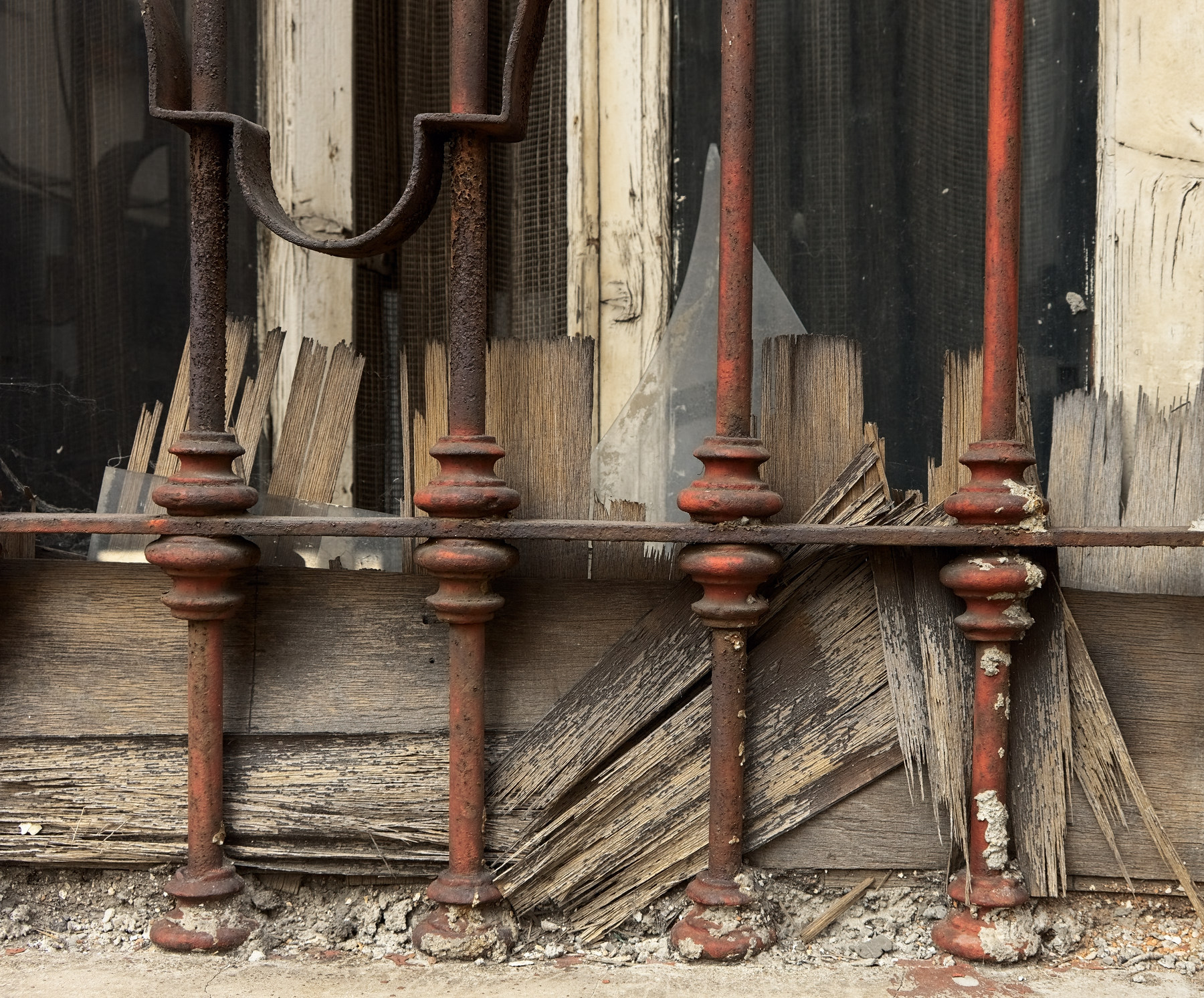 Una bella costruzione in ferro, conserva la sua dignità nonostante la corrosione e i calcinacci alla base. Quello che ci sta dietro essendo materiale molto più fragile è letteralmente distrutto, accartocciato dalle intemperie. Lo stato di abbandono è notevole. Eppure nonostante ciò il manufatto in ferro mantiene la sua sfibrata bellezza.