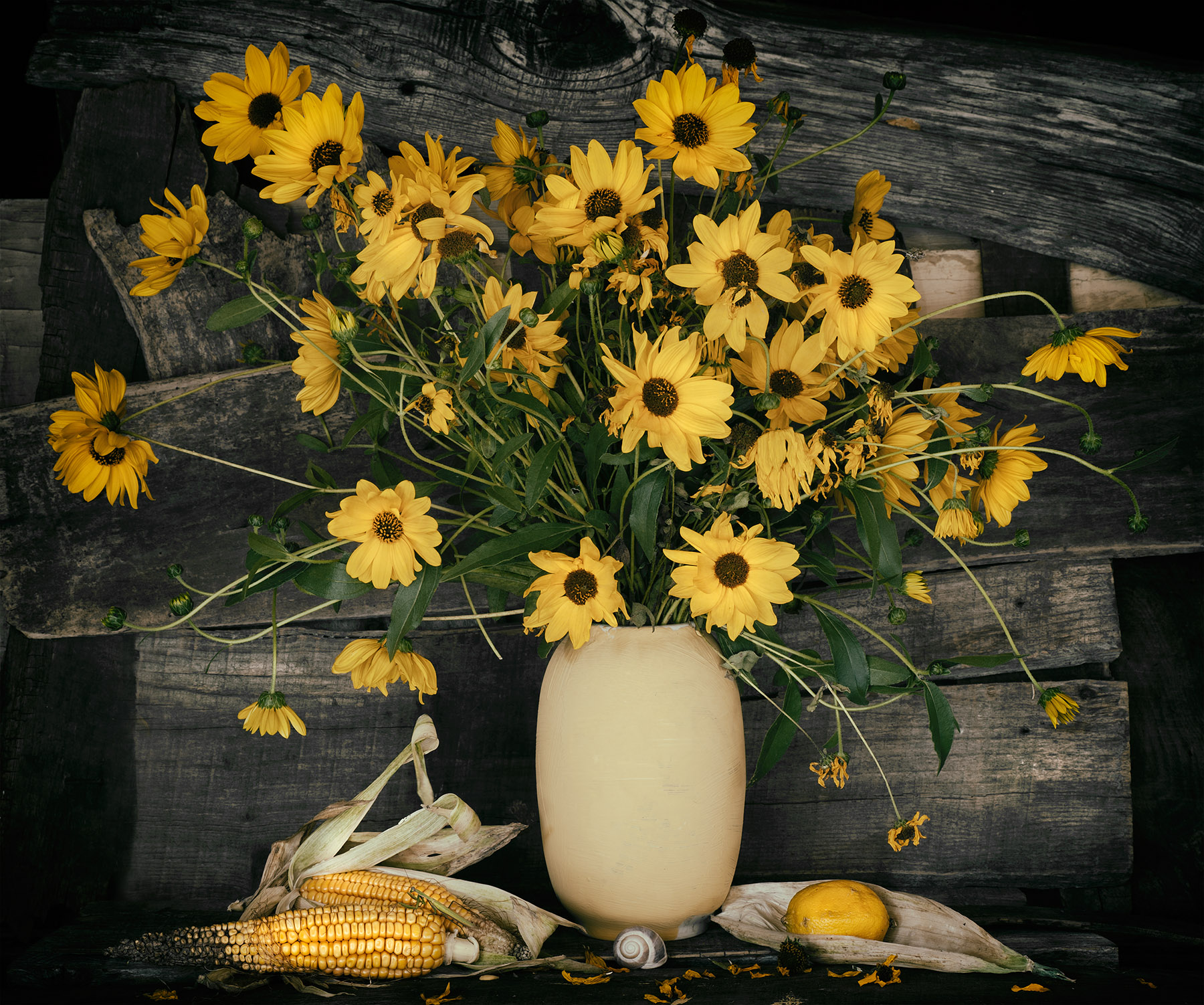 Bella questa natura morta in giallo su fondale ligneo. Uno scatto riuscito e leggermente diverso dal tuo stile pur sempre riconoscibilissimo.