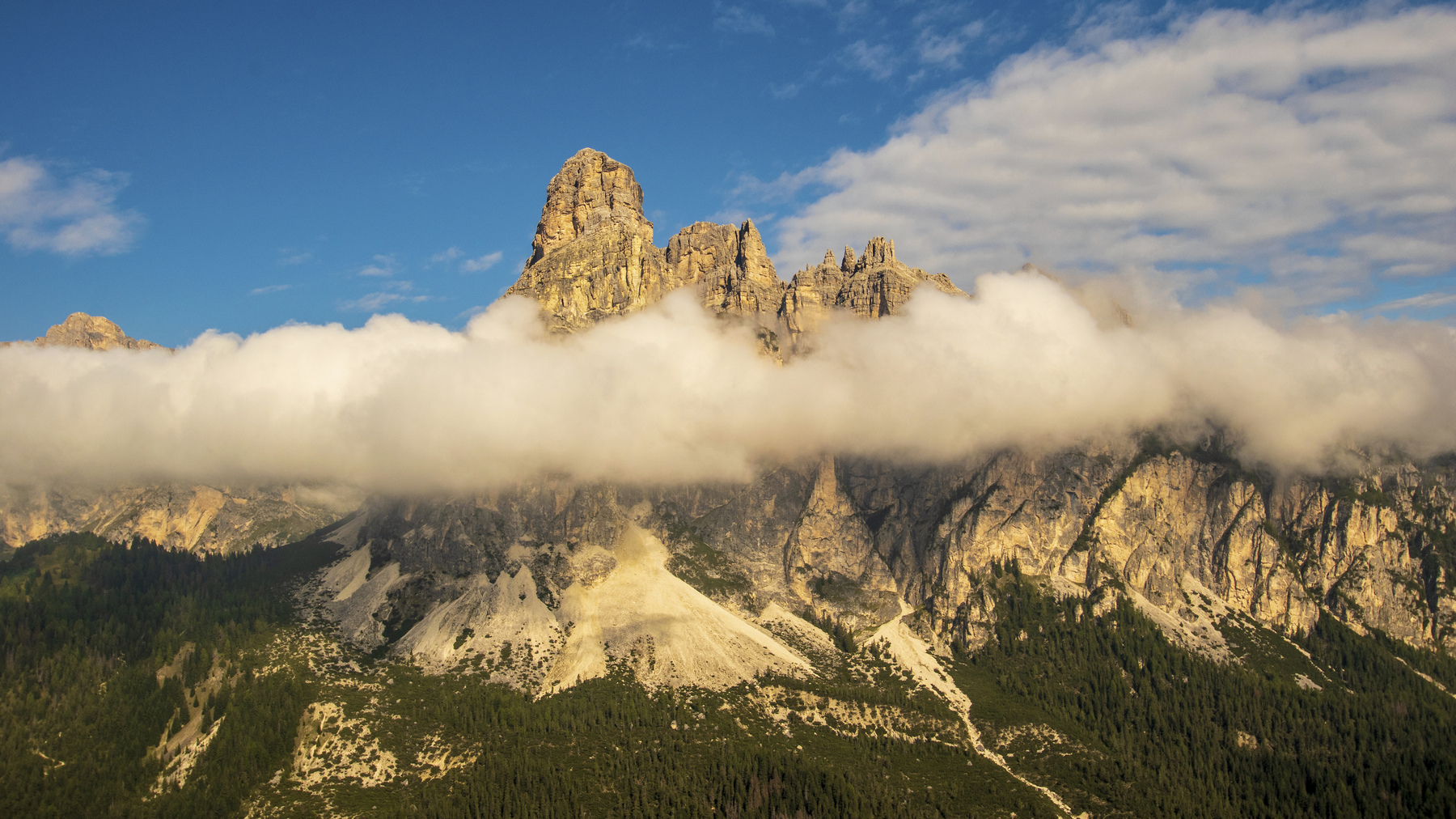 Che spettacolo il cordone di nuvole che abbraccia le montagne.