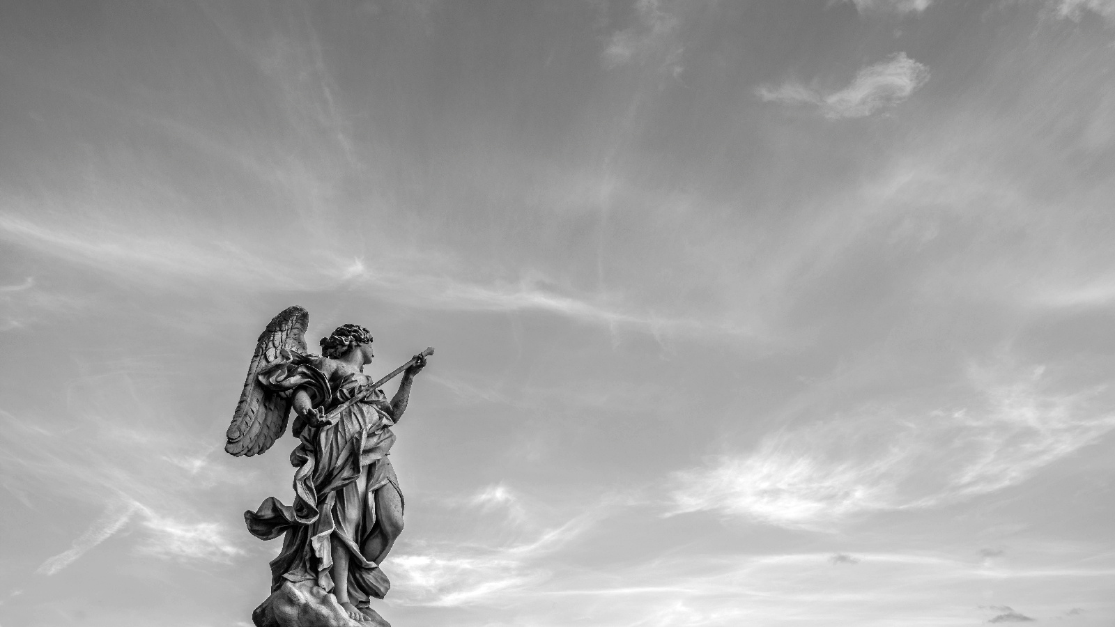 Una foto fatta con estremo gusto. La presenza della scultura angelica e alata si colloca perfettamente nello spazio aereo con un gran bell'effetto "classicistico" derivato da un bianco e nero adeguato alla situazione visiva.