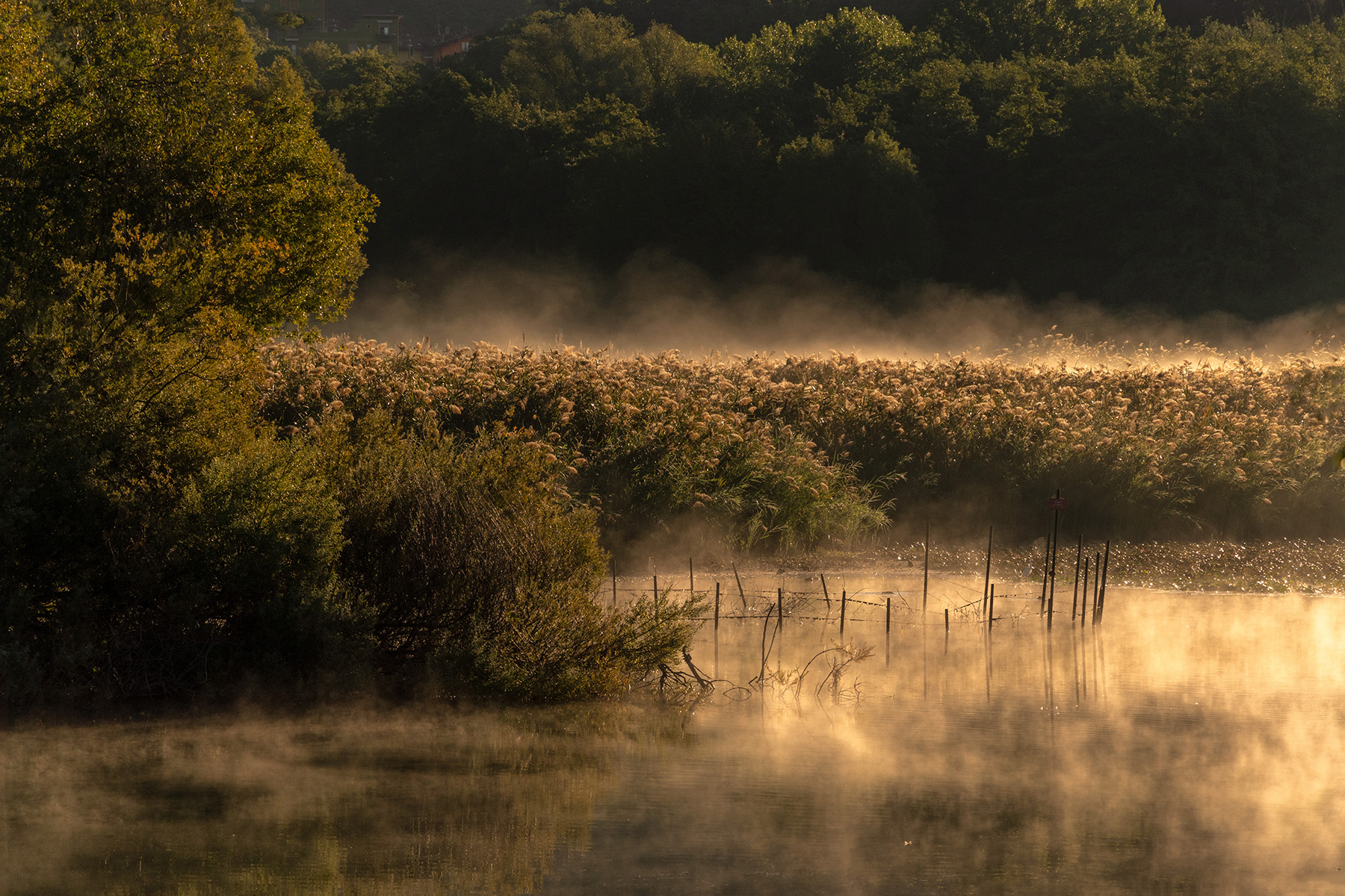 Peccato non spicchi un pochino di più il timido soggetto sulla riva.. Un tuffo nel tuo linguaggio fatto di emozioni vaporose e accoglienti, di pennellate d'oro e respiri silenziosi del fiume. Forse la vegetazione diventa una presenza un po' troppo importante, però ti dirò sei riuscita a renderla un elemento di riempimento tutto sommato ben equilibrato. E quindi alla fine mi piace così. Brava Ciao
