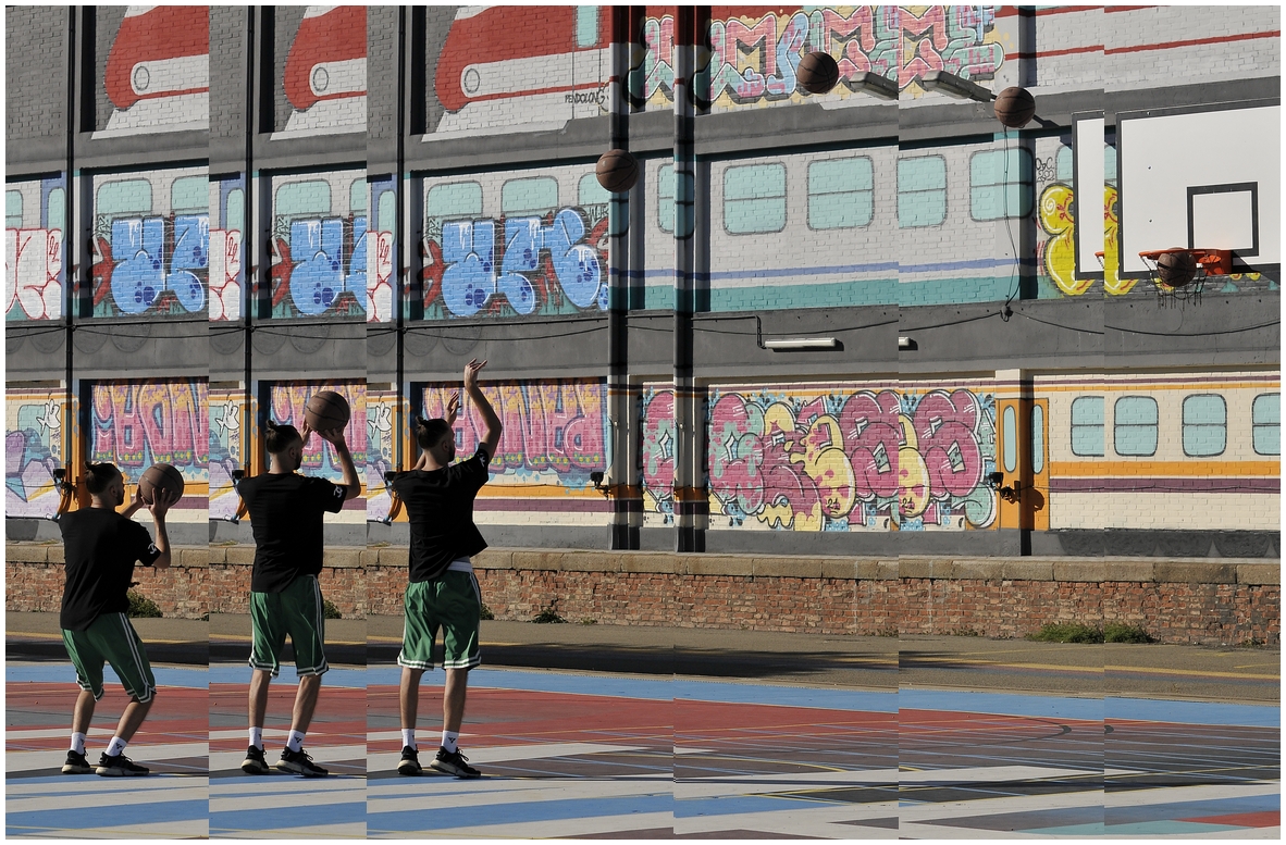 Idea molto simpatica e ben realizzata Ok! A voler essere pignoli, avrei dato più spazio ai fotogrammi di sinistra con il ragazzo (soprattutto al secondo) e meno a destra per mostrare di più il movimento della palla, ma l’immagine è comunque originale e gradevolissima Smile