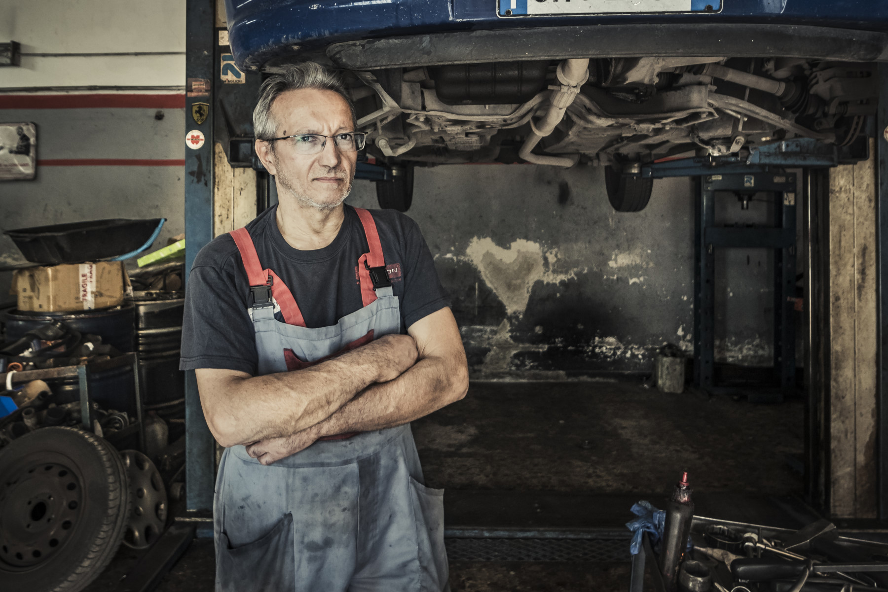 Immerso nell'ambiente di lavoro con la posa e il volto di chi si concede un attimo di pausa; questo è uno scatto molto bello con chiari e scuri che danno corposità all'immagine. La figura molto dettagliata ci parla del suo lavoro e del suo ambiente. Bravo Antonio