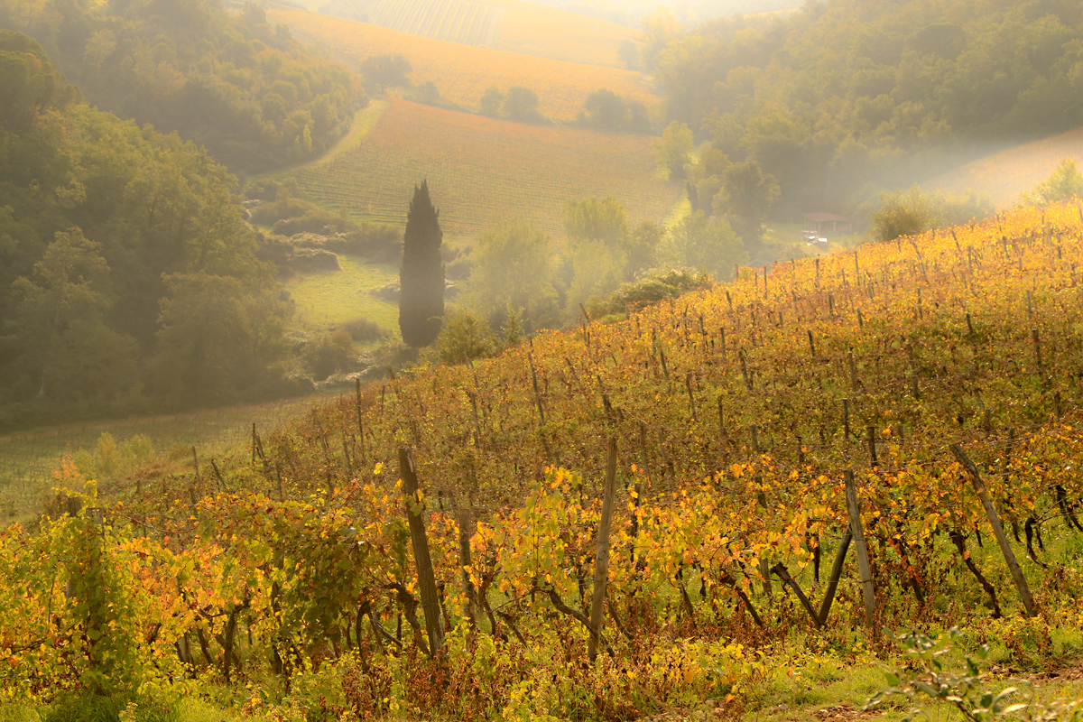 Devo dire che le tinte e la leggera nebbiolina mi fanno pensare più al Monferrato che al Chianti...
