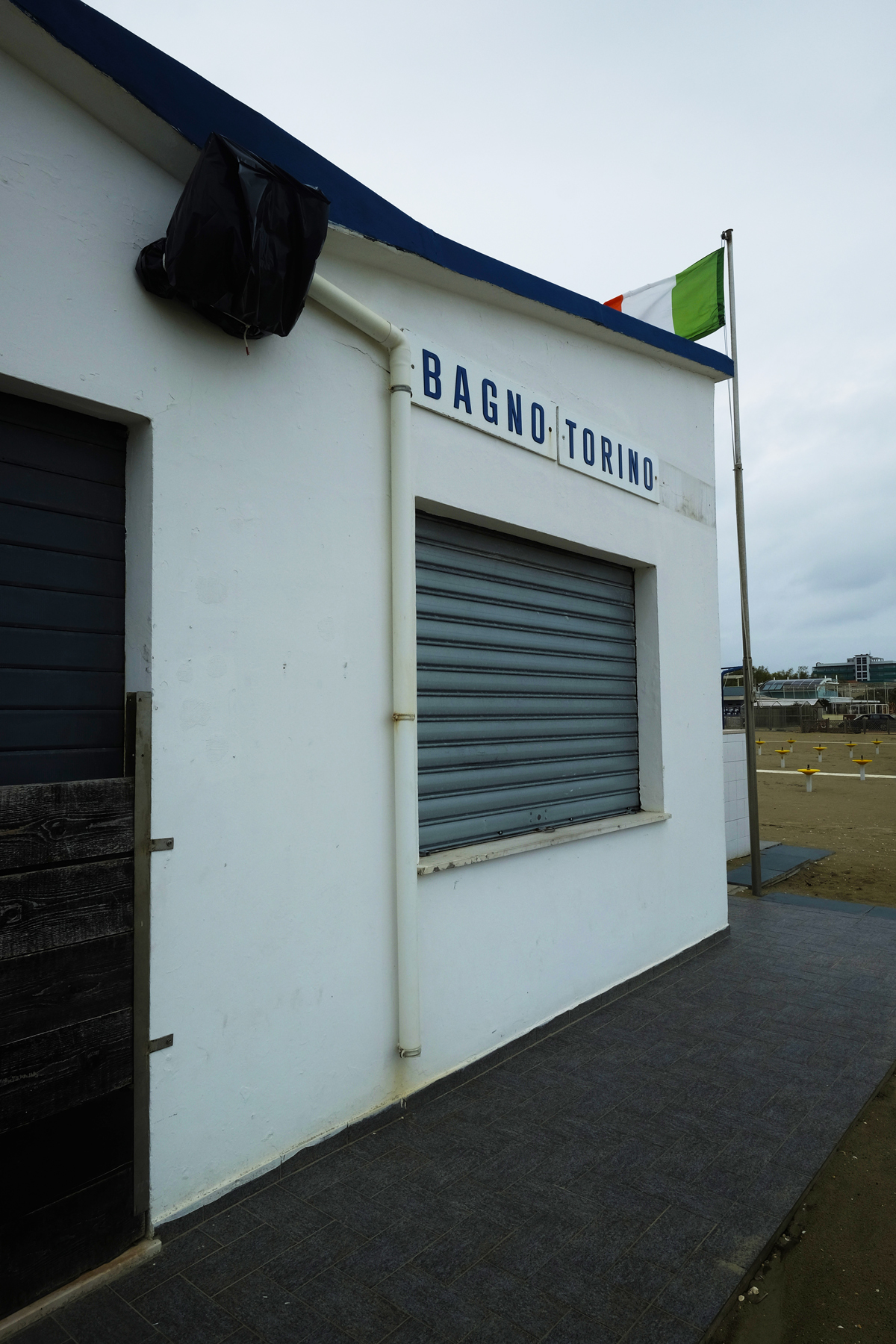 L'idea si legge tutta: la porta chiusa per un lungo periodo, gli ombrelloni smontati, il mood cupo e un po' triste.