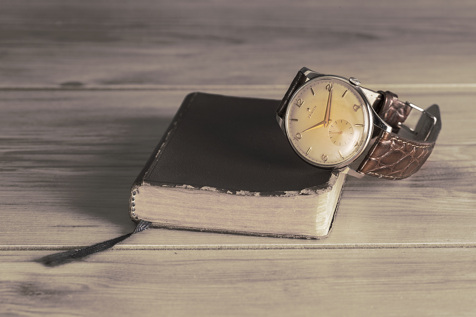 Non è facile fotografare gli orologi, perché comunque il vetro riflette qualcosa… Mi sembra che tu ci sia riuscito bene, il chiarore in basso è sfumato e a mio avviso non disturba troppo Adeguata la composizione vintage