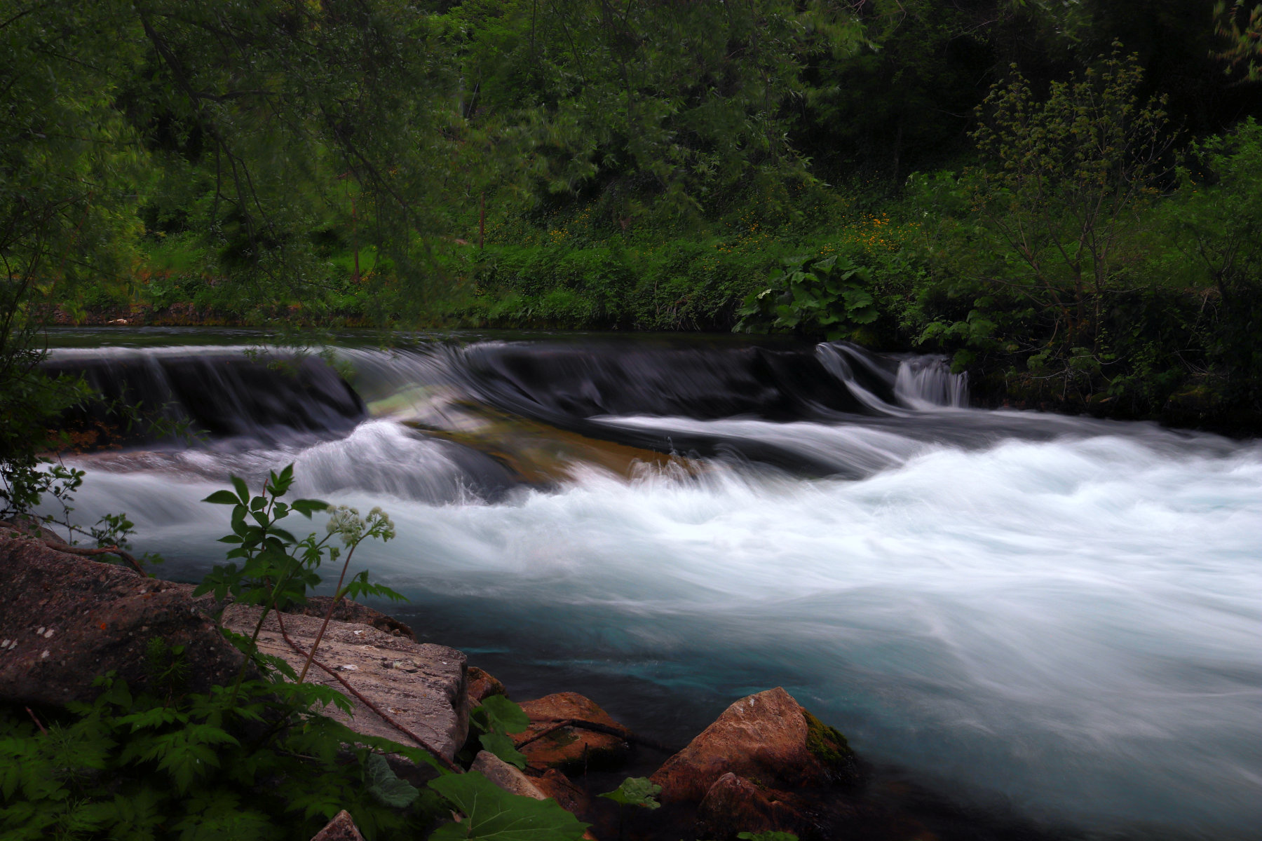 Il tempo adeguato e il diaframma chiuso restituiscono un'immagine gradevole, dominata dall'acqua del torrente e dallo sfondo verde.