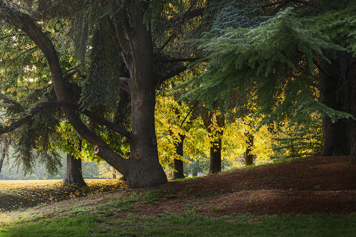 La vera forza dell'immagine però è il colpo di luce che accende letteralmente le foglie gialle al centro della composizione.