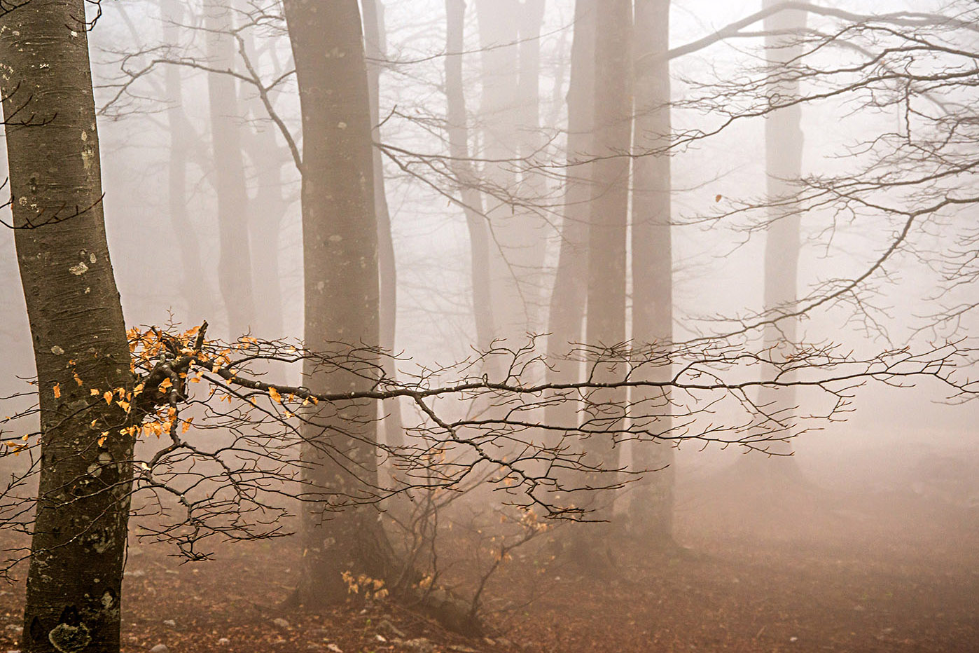| sempre bello il bosco nel tardo autunno con le nebbie che diradano la visione morbida degli alberi. In questo caso la faggeta rende bene. Brava. Ciao, Tiziano |