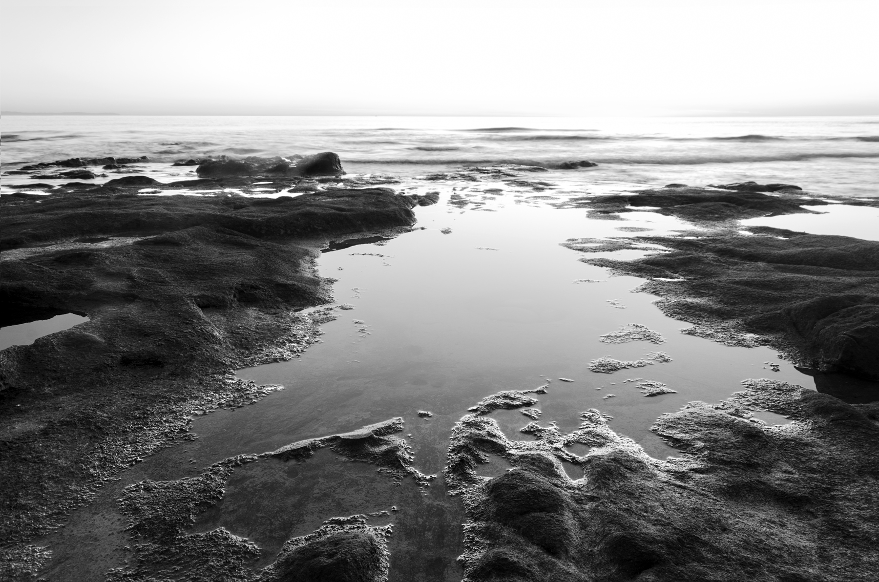 La pozza in primo piano ci porta con lo sguardo verso le striature delle onde marine che sfumano in lontananza. Il BN lo trovo buono luminoso e ben gestito anche se mi resta la curiosità di vedere la versione a colori.