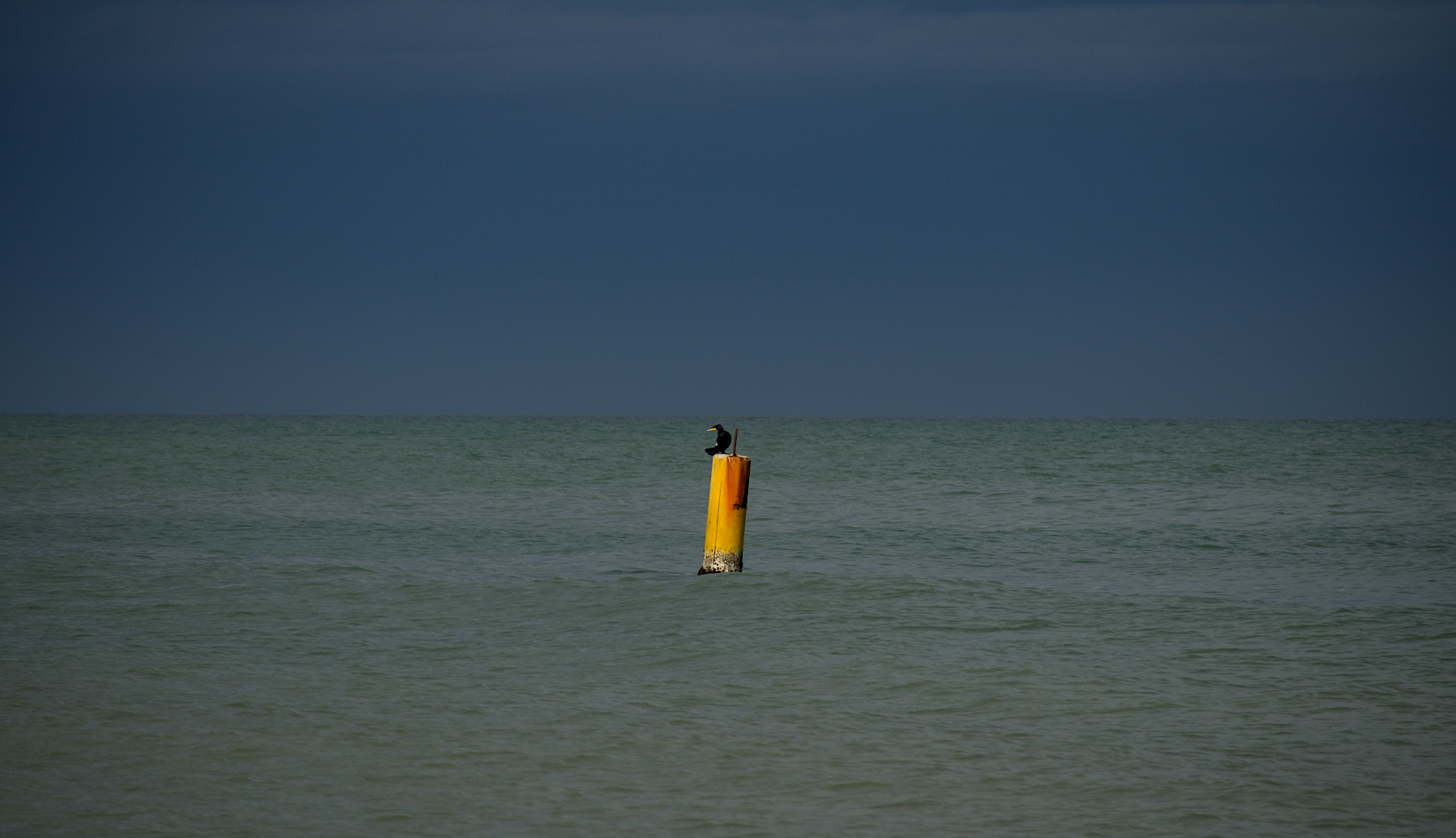 Questo palo di segnalazione così ben isolato e che svetta tra cielo e mare cattura l'occhio in maniera impressionante e già per questo ti faccio i complimenti.