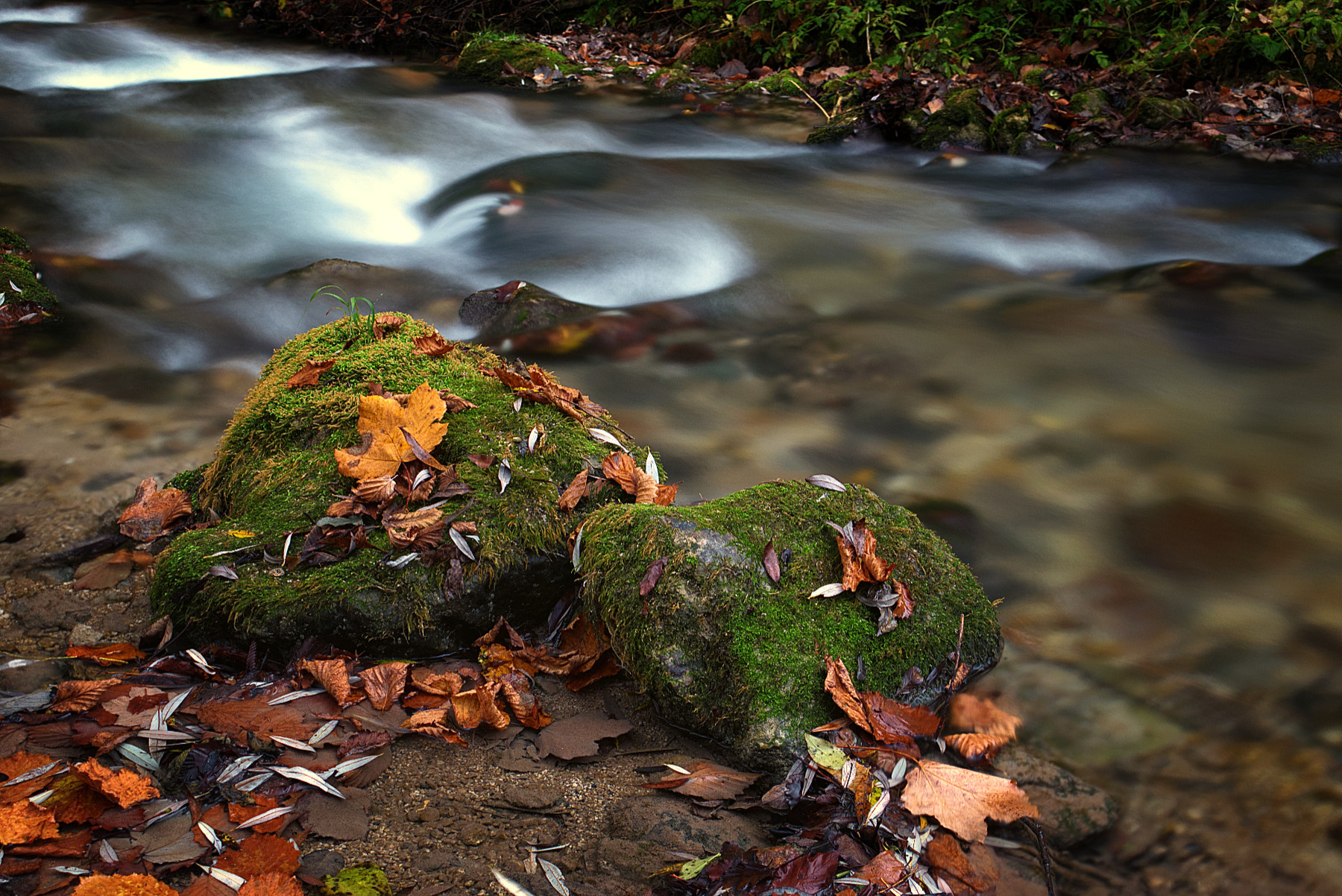 una buona foto anche a mio avviso al netto delle bruciature risolvibili con un minimo di post. I colori autunnali sono ben saturi ma non eccedono e staccano bene dalla quasi uniformita' cromatica del ruscello. Lo sviluppo della composizione sfrutta la diagonale. A gusto personale e per una maggiore pulizia avrei provato ad escludere dall'inquadratura la porzione di sasso che entra in alto a sx,