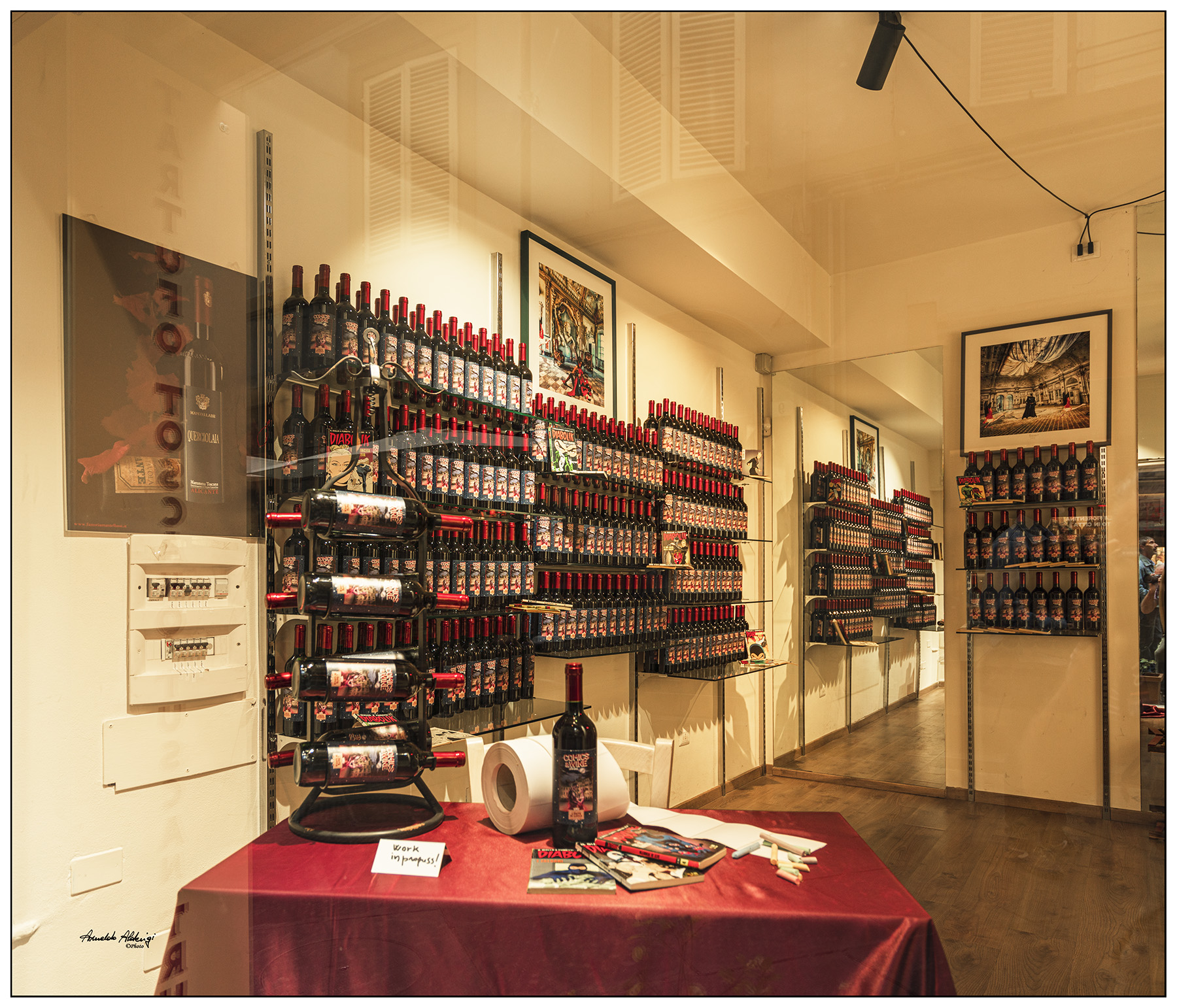 Nel Periodo del Lucca Comics & Games; Il Fumetto di Diabolik era un po’ presente in molti negozi.. passando davanti ha questa bella vetrina con bottiglie di vino tutte etichettate uguali, la presenza sparsa un po’ ovunque di questo fumetto.. mi ha attirato il buon ordine e colori.. mi rammarico che il negozio era ancora chiuso ed ho dovuto riprendere da fuori vetrina..