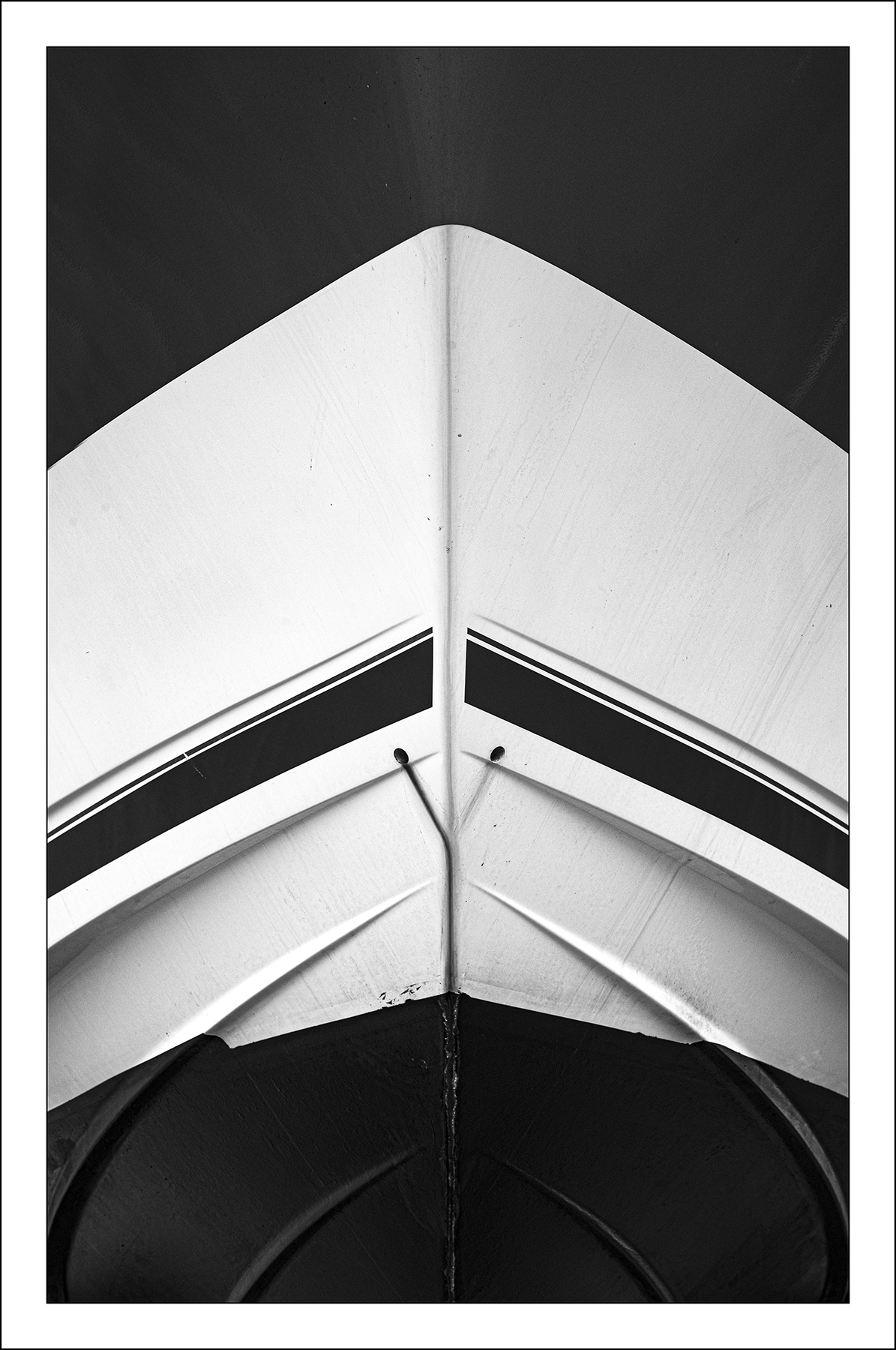 imponente e questa prua, resa ancor più maestosa da questo splendido b/n, precisa la simmetria e il colpo d'occhio è eccezionale, bravissimo Bruno.