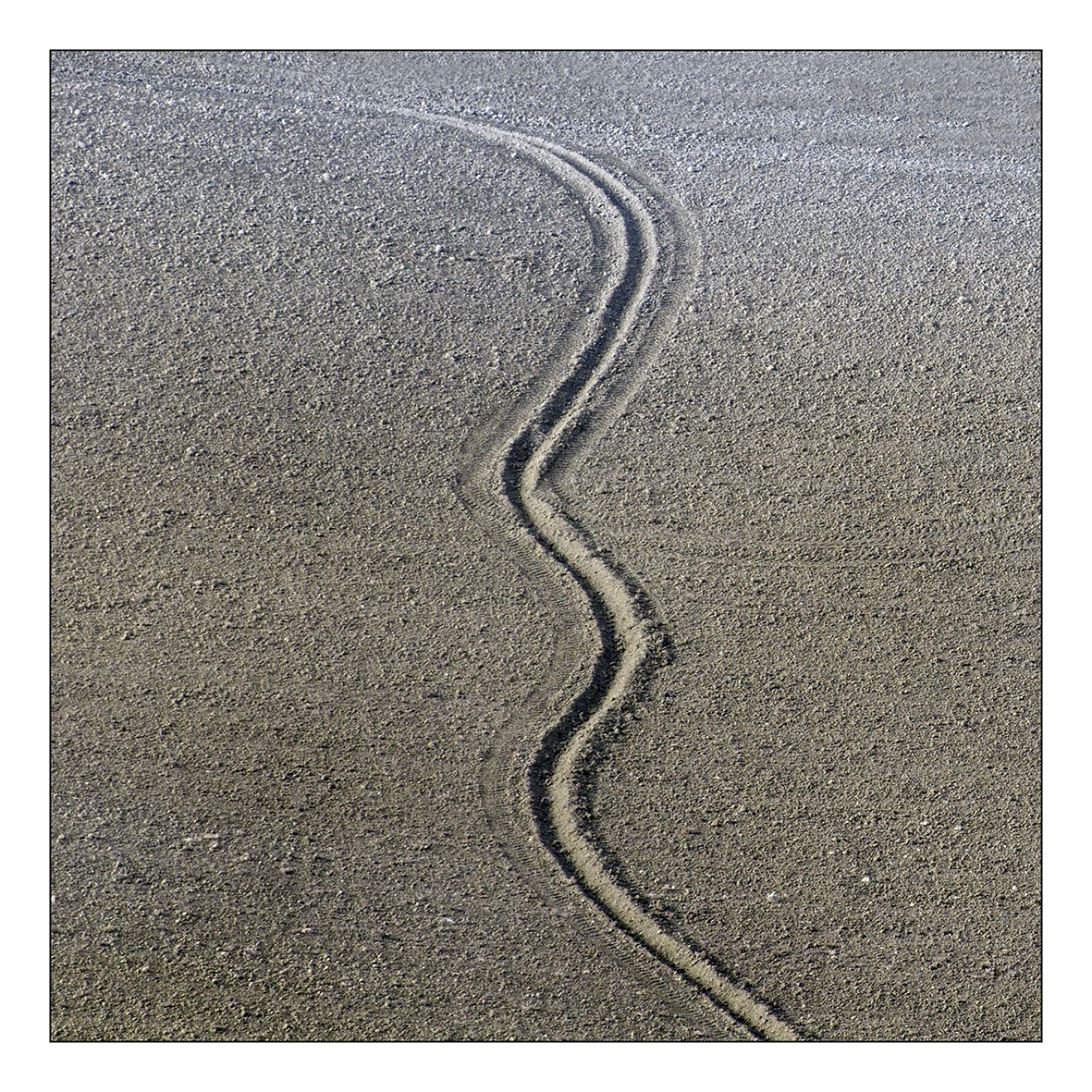 Potrebbe essere una serpentina disegnata su un pezzetto di sabbia così come la ripresa aerea di una strada in una distesa sconfinata. E questa indeterminatezza ha il suo fascino...